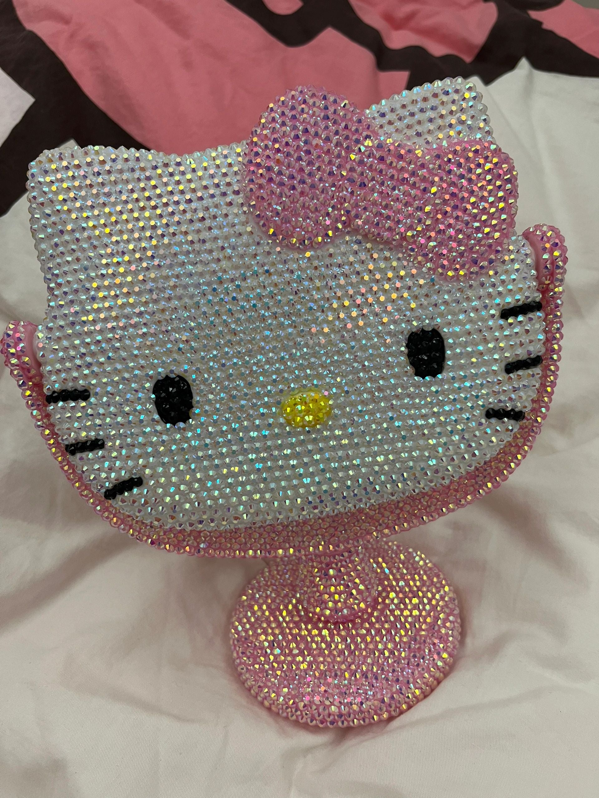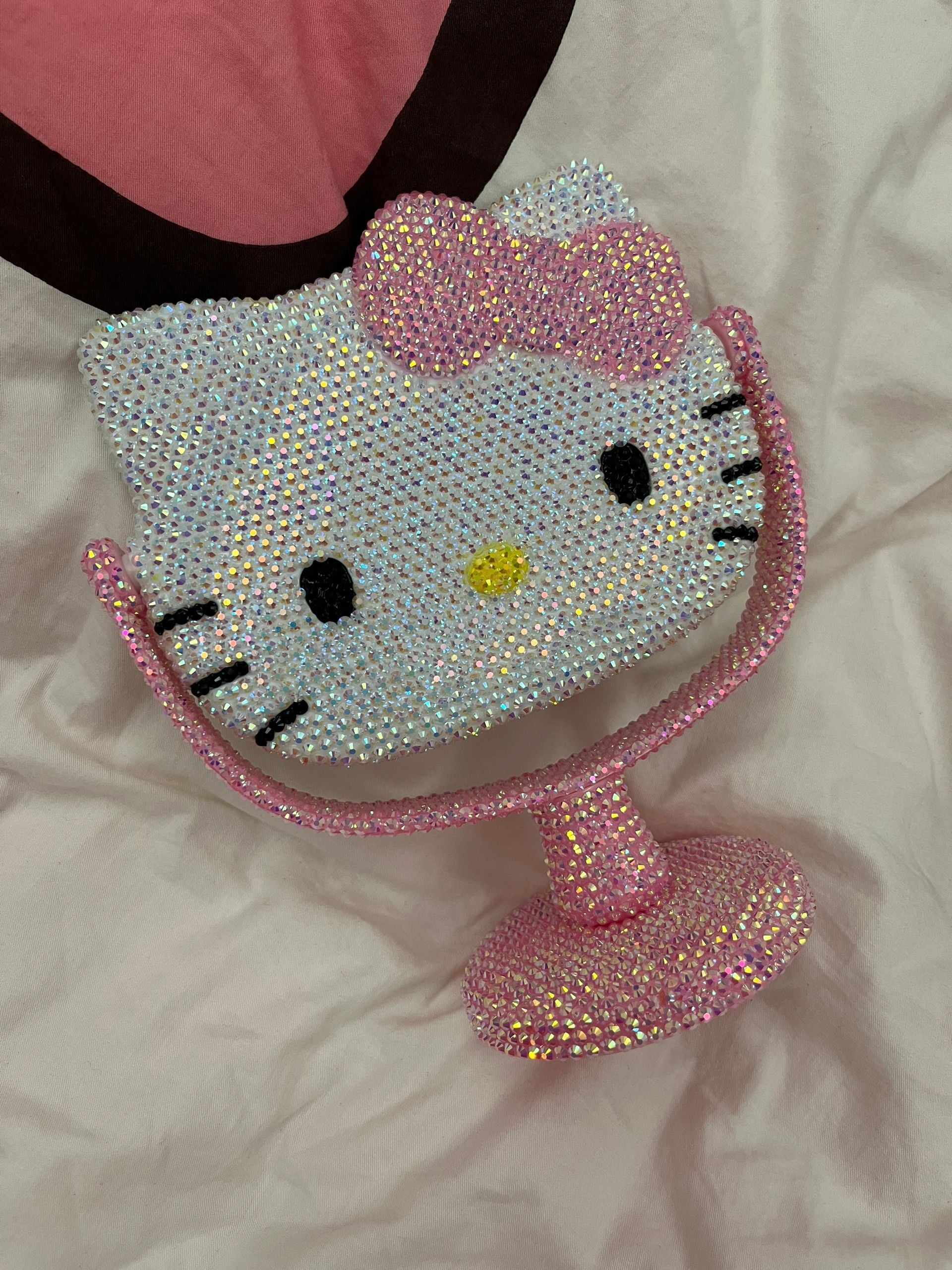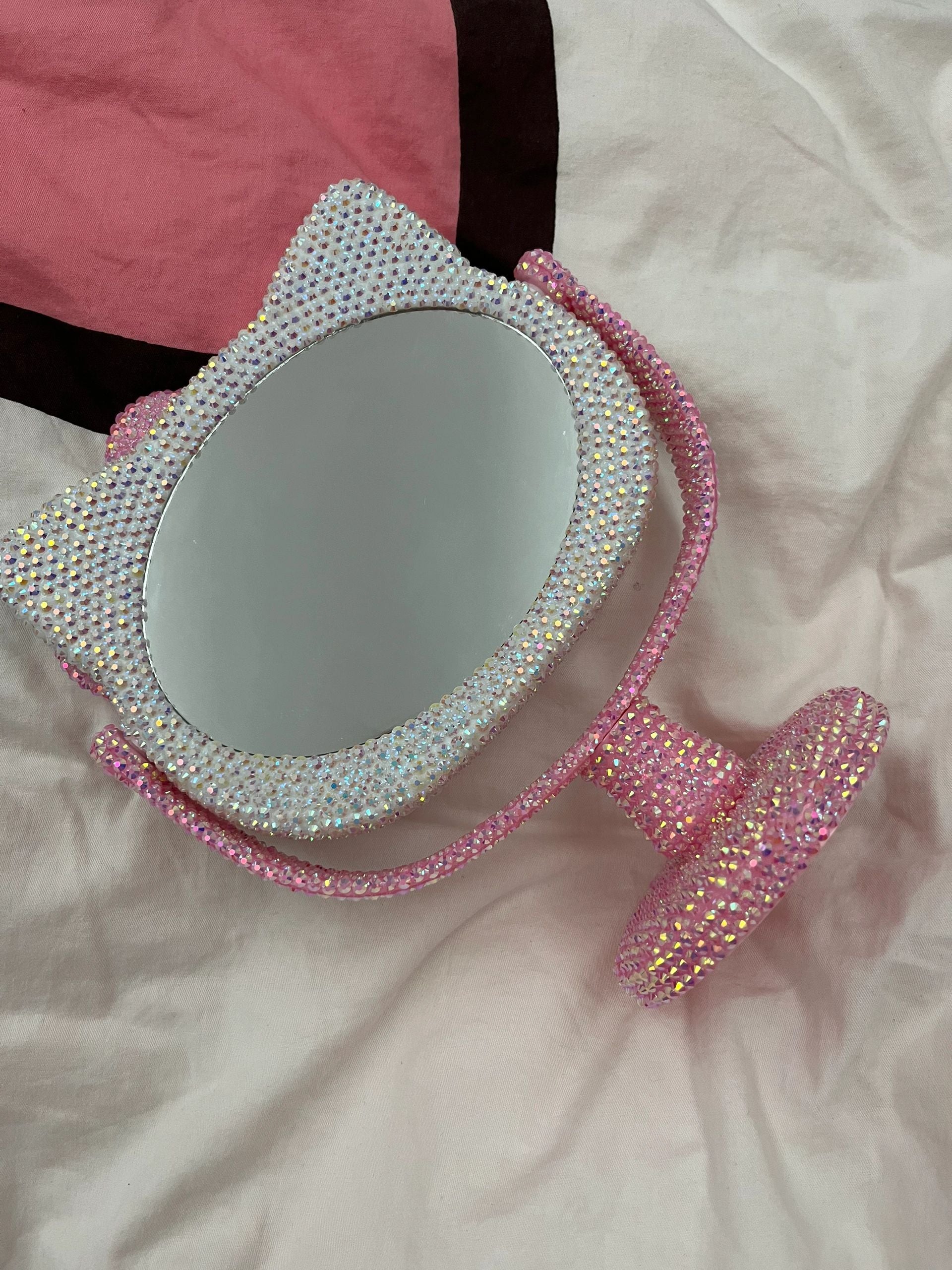KT Bling Bling Tabletop Swivel Vanity Mirror Sparkly Compact Mirror Handmade Crystals