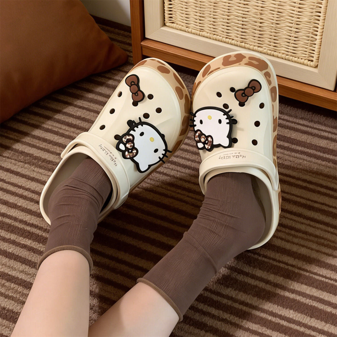 Hello Kitty Leopard-print Clogs Slip on Water Casual Sandal Shoes