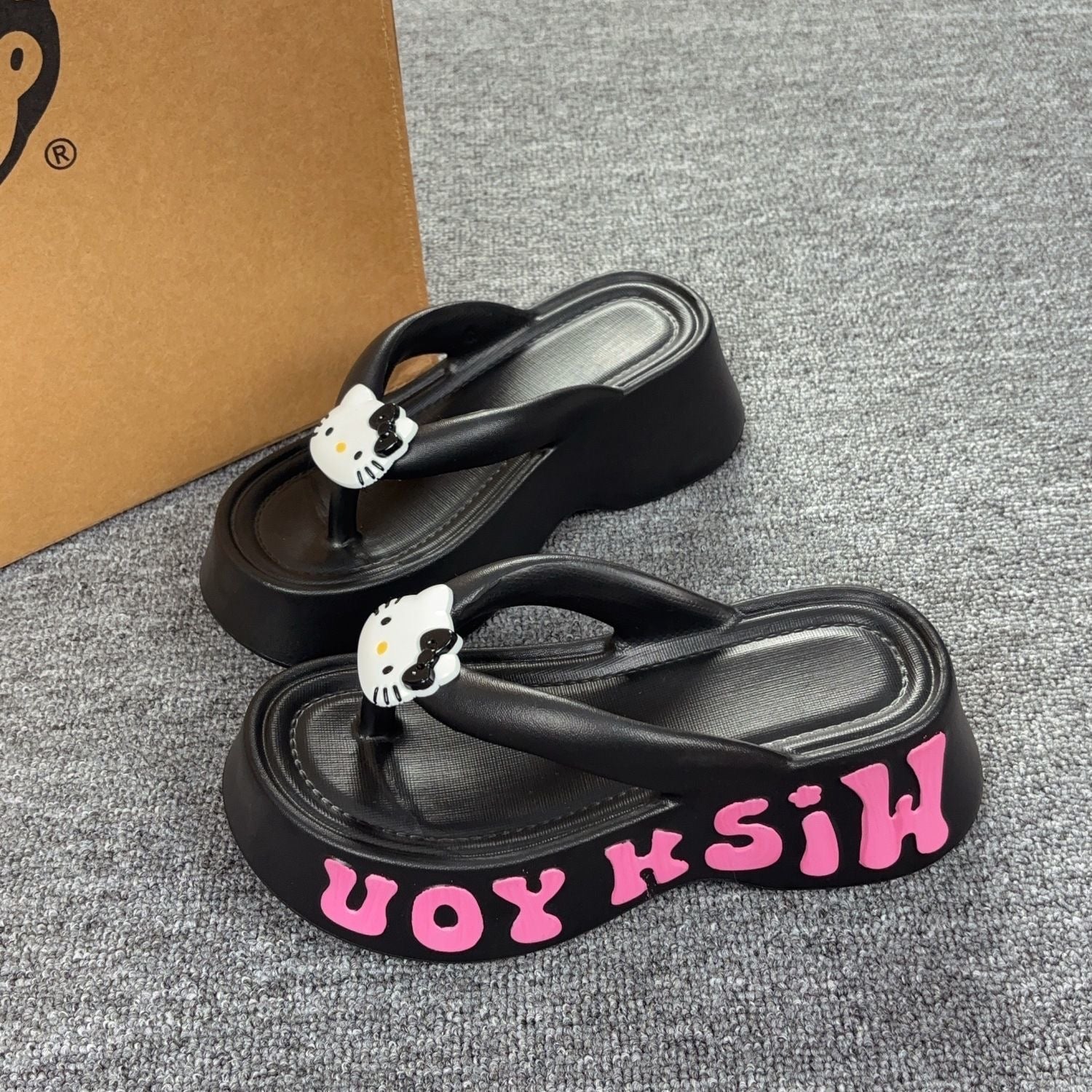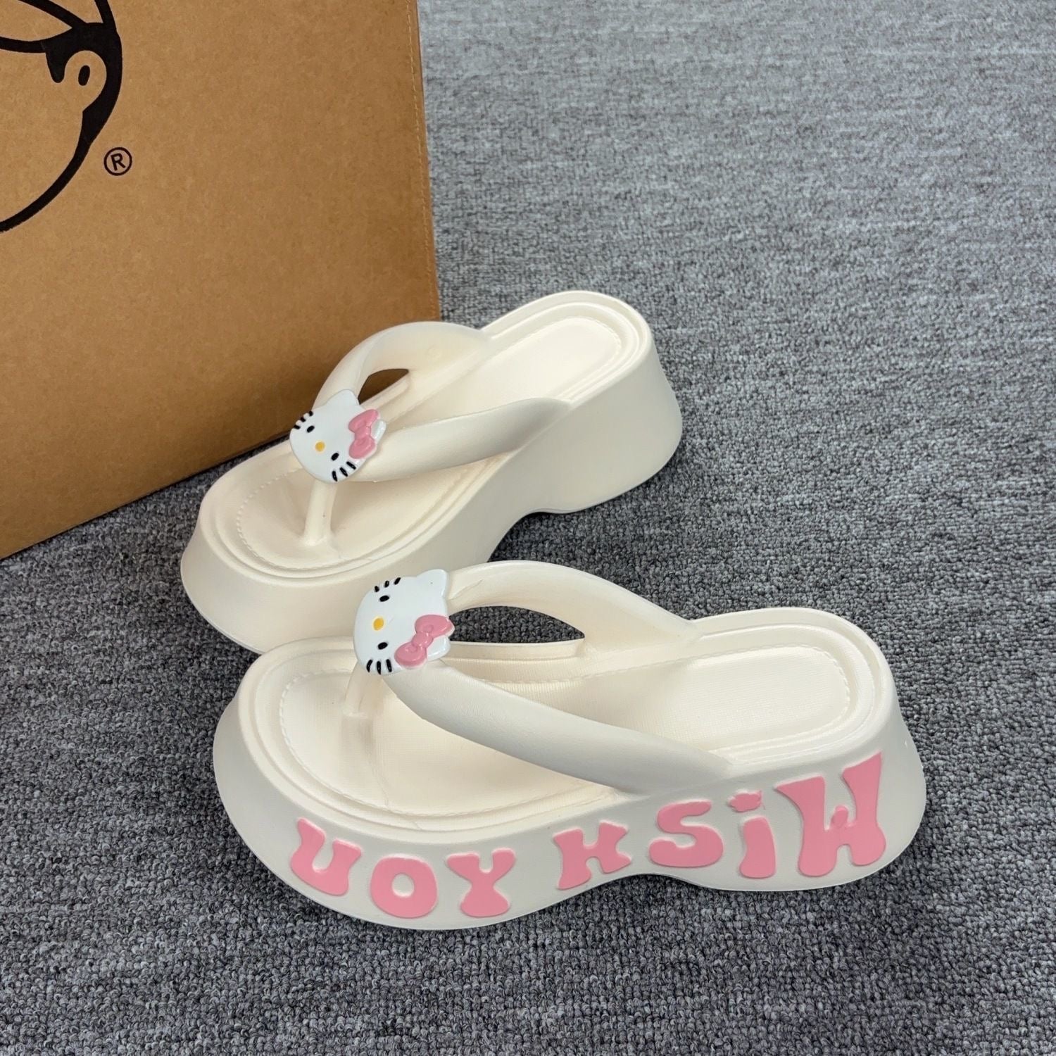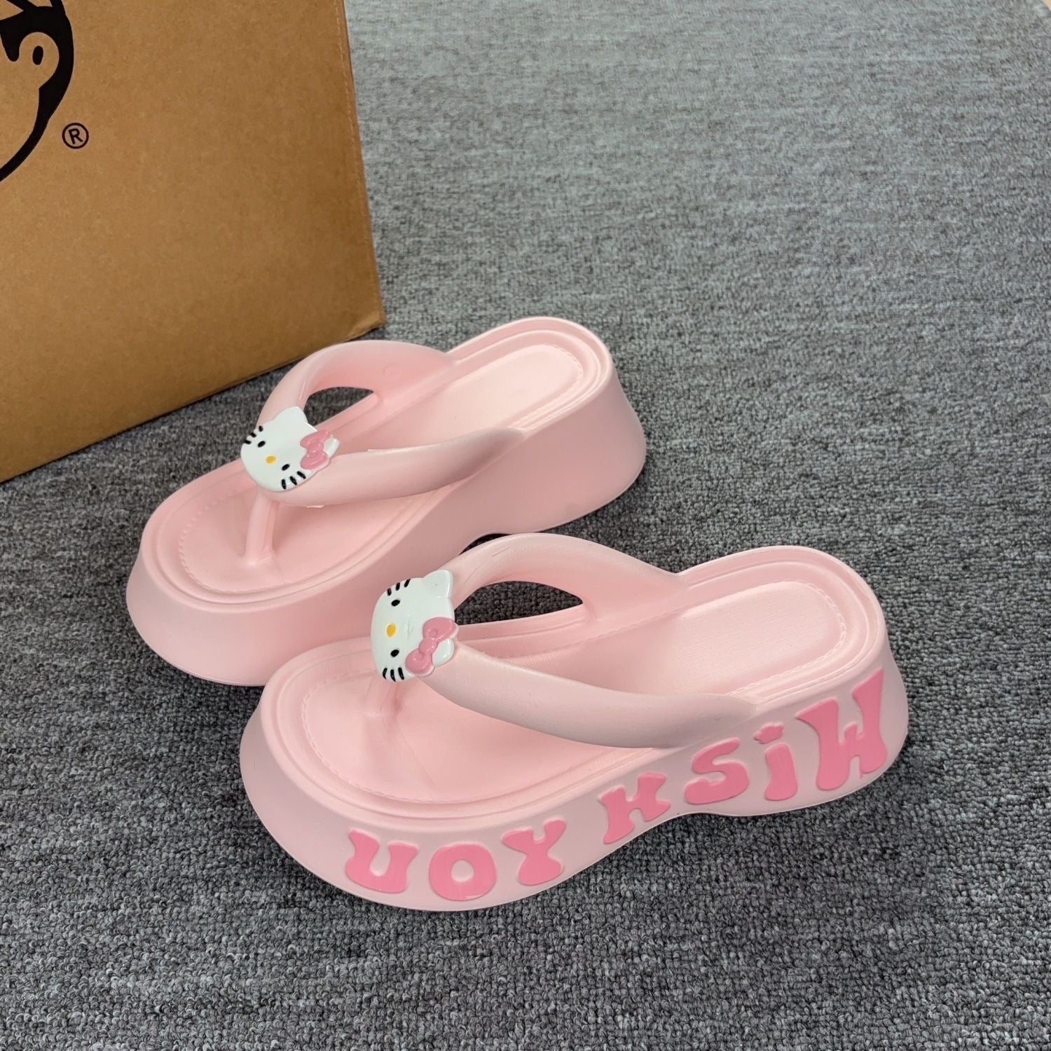Hellokitty 6cm Sandals Cute Slippers Non-Slip Flip Flops Chunky Slippers