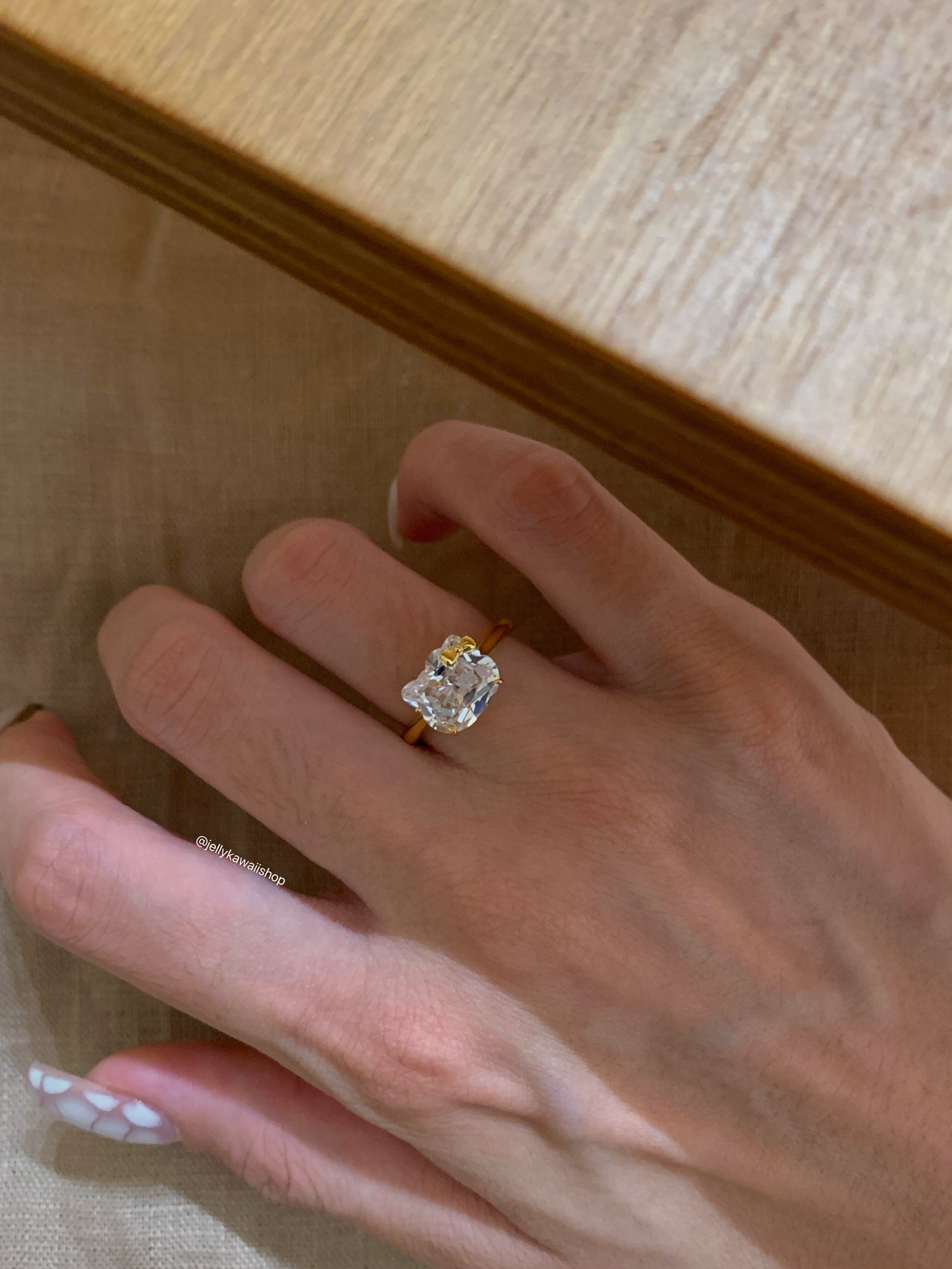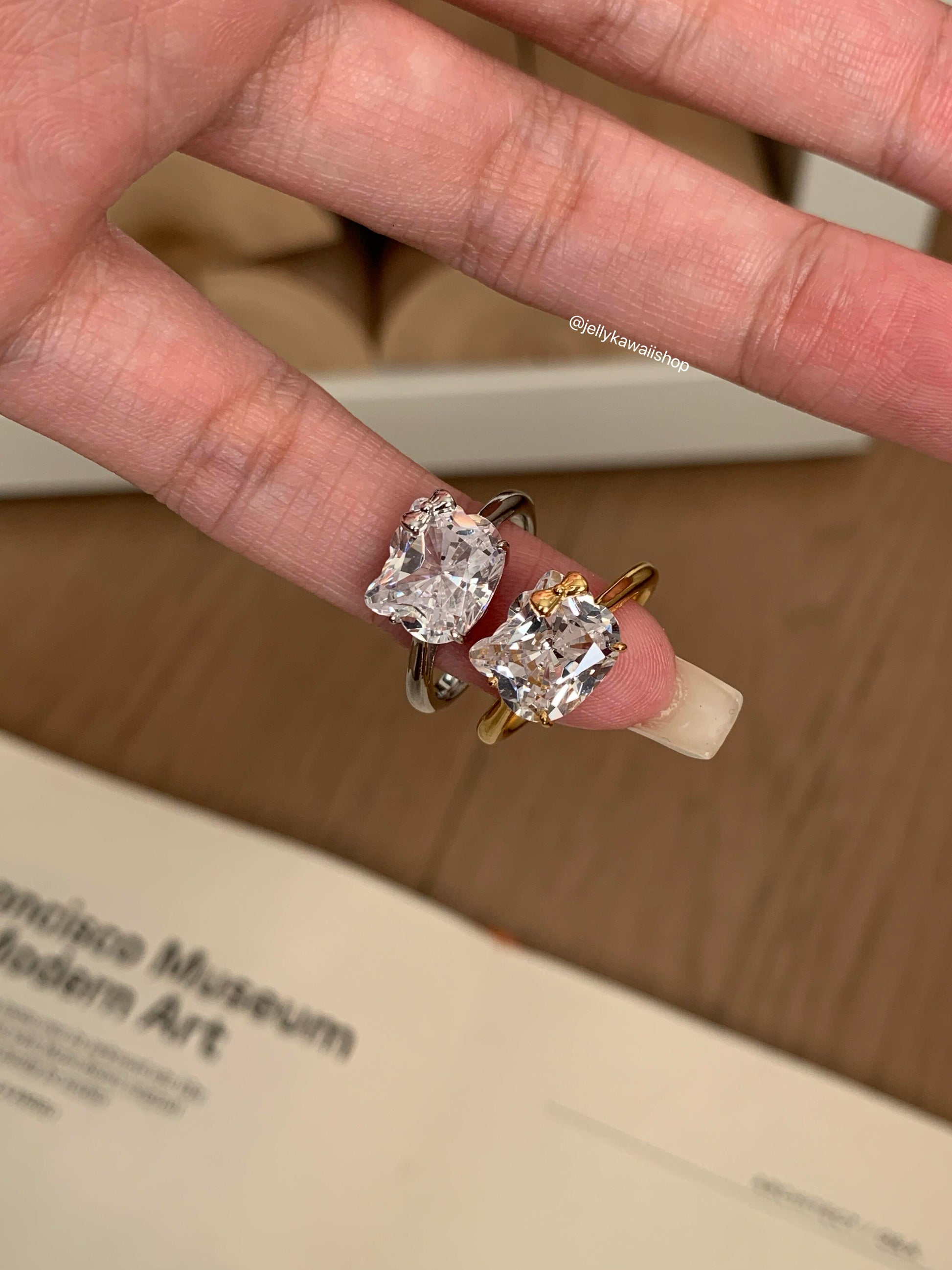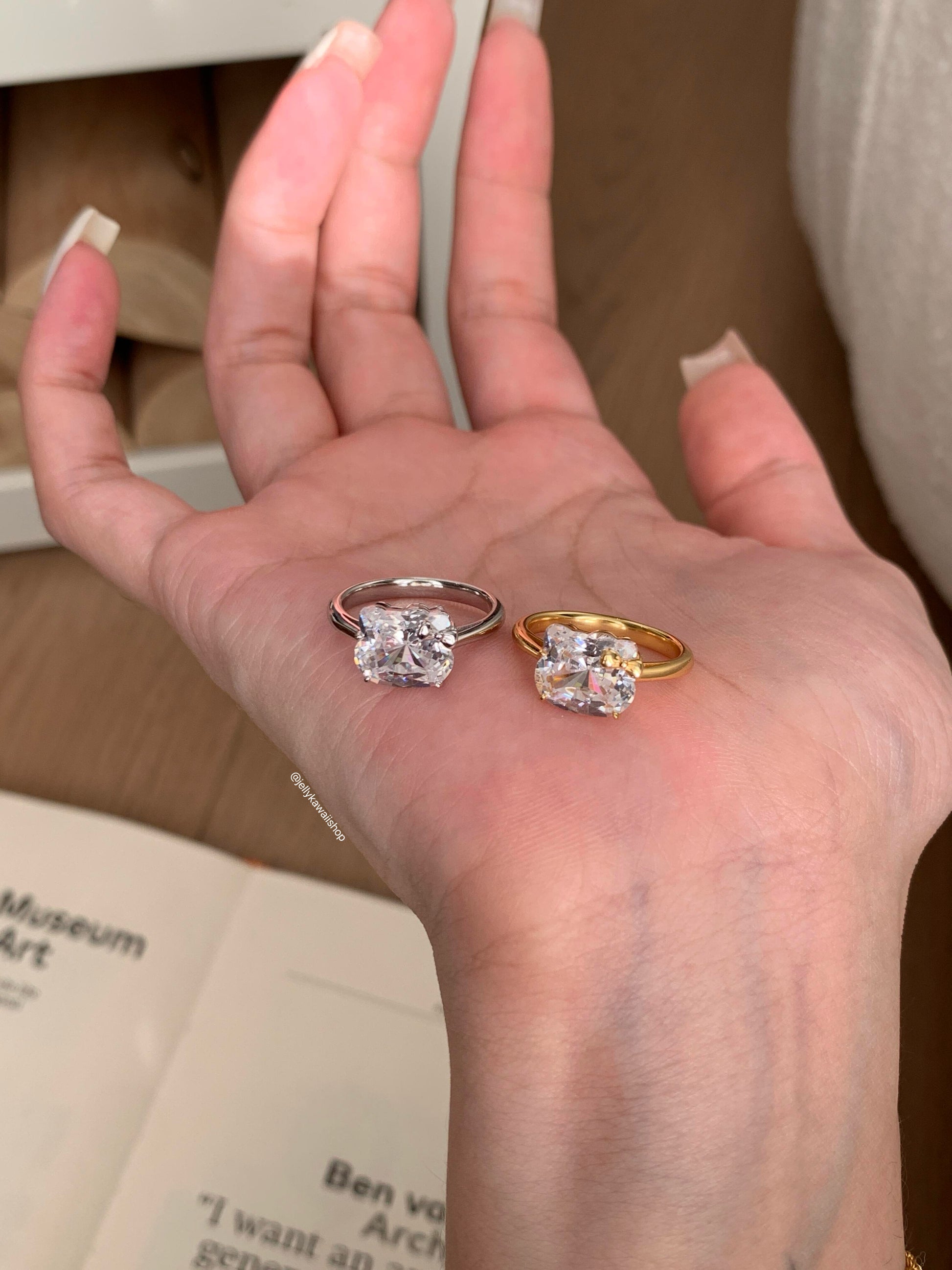 Hellokitty 925 Sterling Silver 18K White Gold Plated Cubic Zirconia Promise Ring for Women