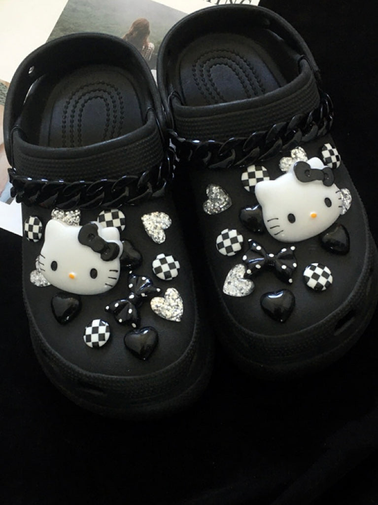 KT Aesthetic Shoe Decoration Charms for Crocs Clog Slides Sandals (26 PCS + 2 Chains)