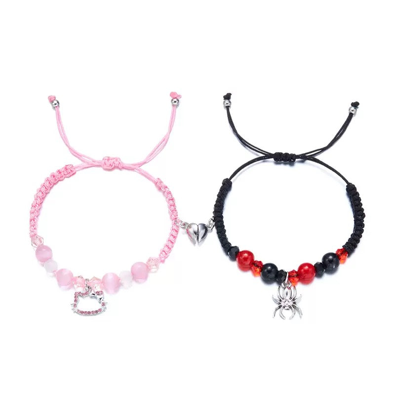Hellokitty and Spiderman 2 Pcs Magnetic Couples Adjustable Bracelets