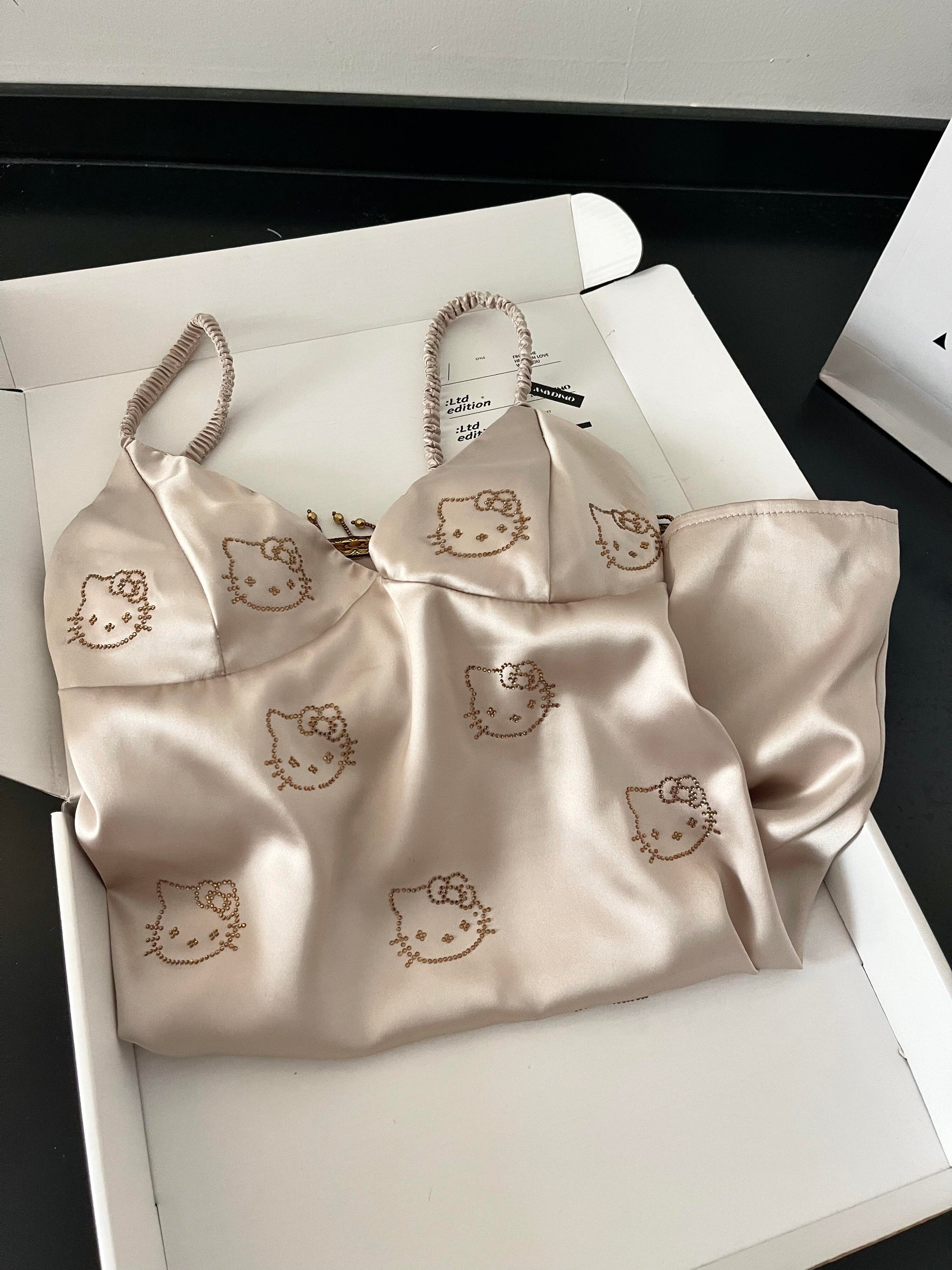 Hellokitty Champagne Silk Cute Nightgown for Women Satin Slip Dress Nightdress