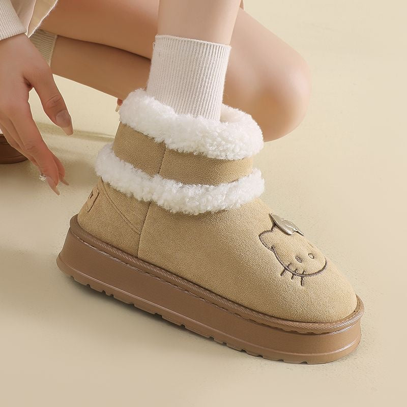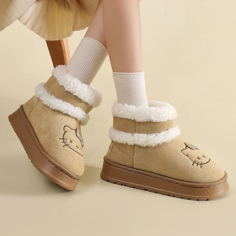Hellokitty Cute Pompon Lace Up Fur Winter Snow Boots Fluffy Boots Shoes
