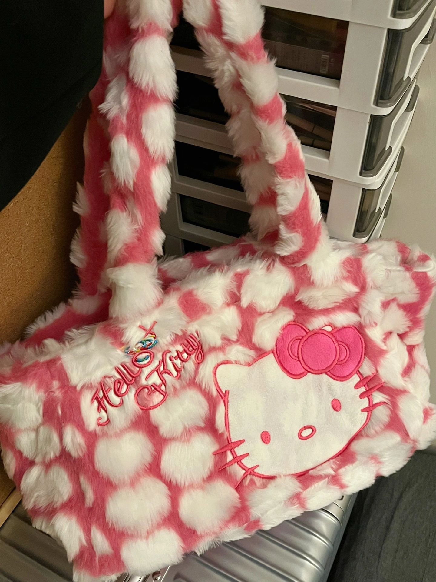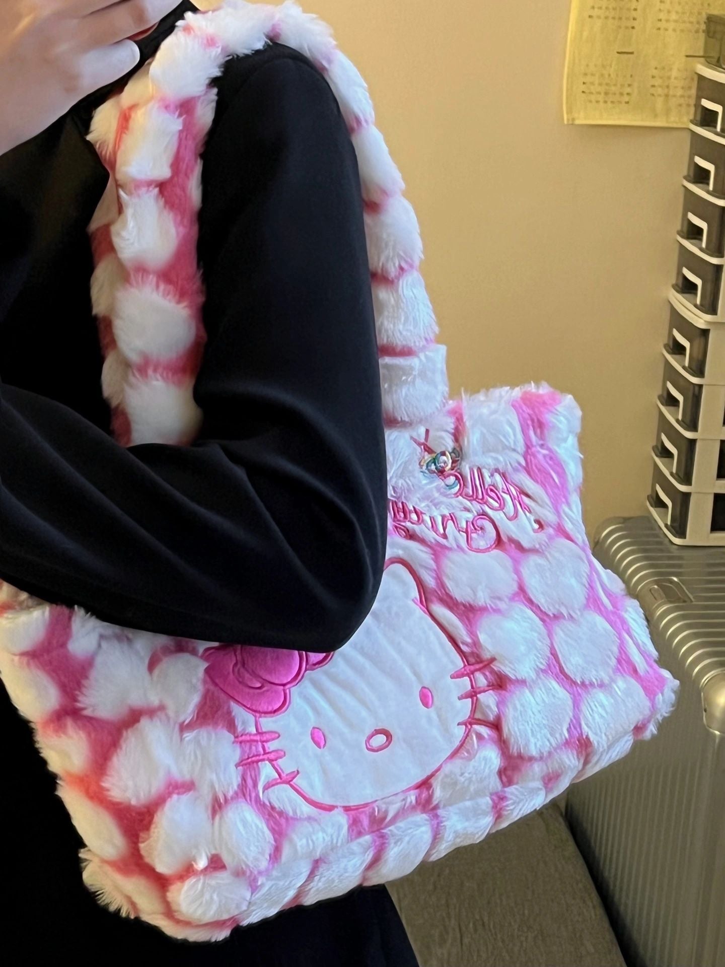 KT Cute Tote Bags Plush Tote Bag for Women The Tote Bag Kawaii Carry on Bag Reusable Small Handbags for Girls Shopping