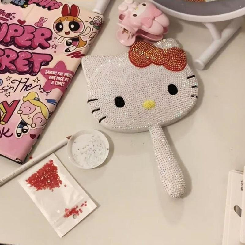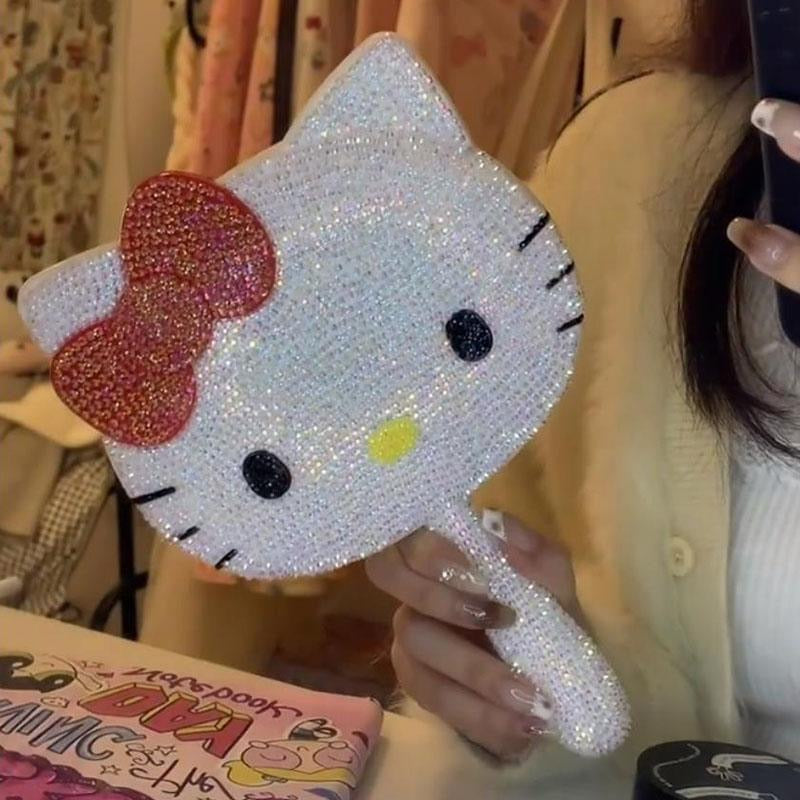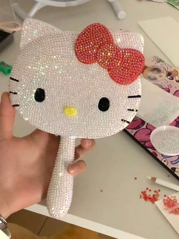 KT Bling Bling Handheld Makeup Sparkly Compact Mirror Handmade Crystals