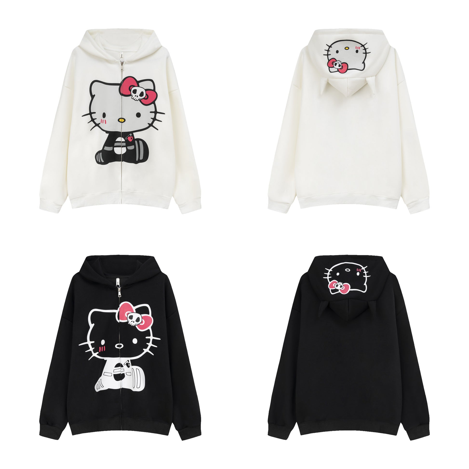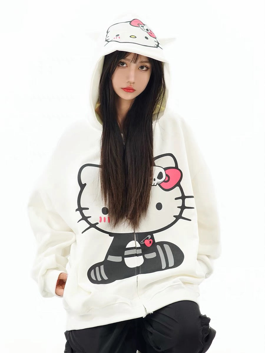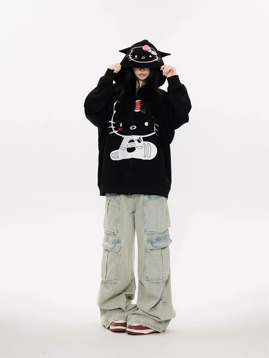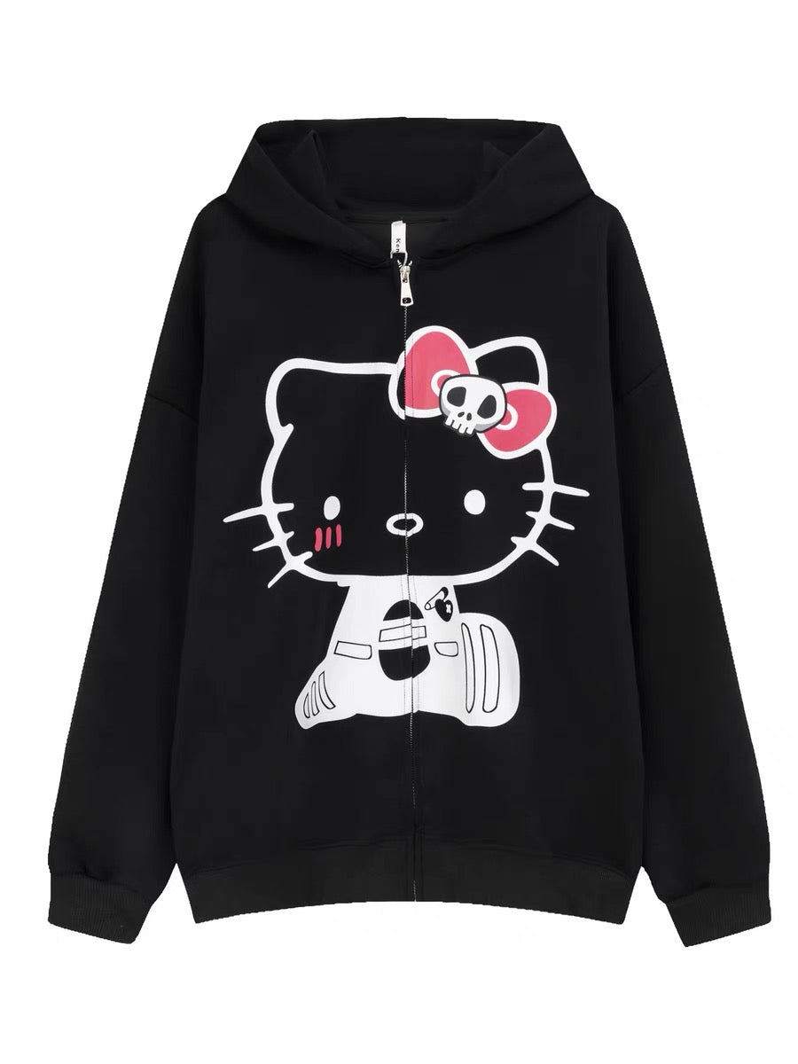 KT Hoodies Fall Jacket Oversized Sweatshirts Casual Drawstring Zip Up Y2K Hoodie with Pocket