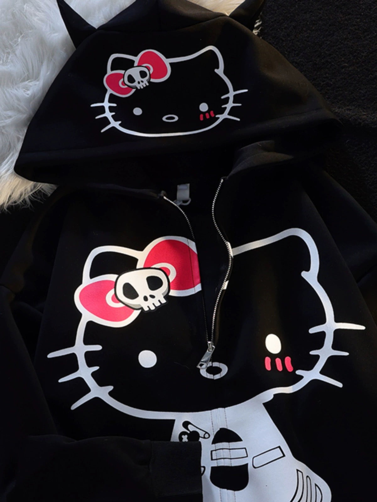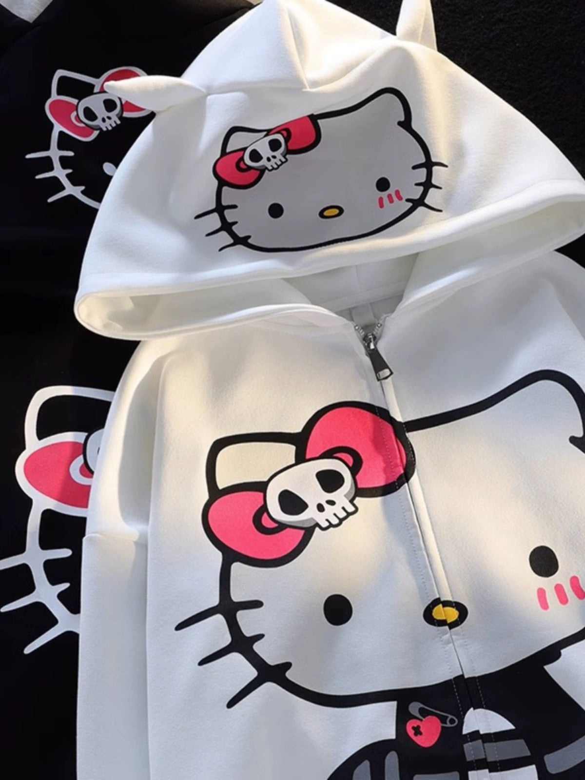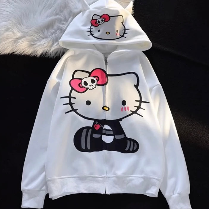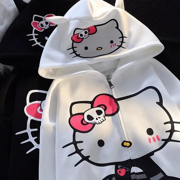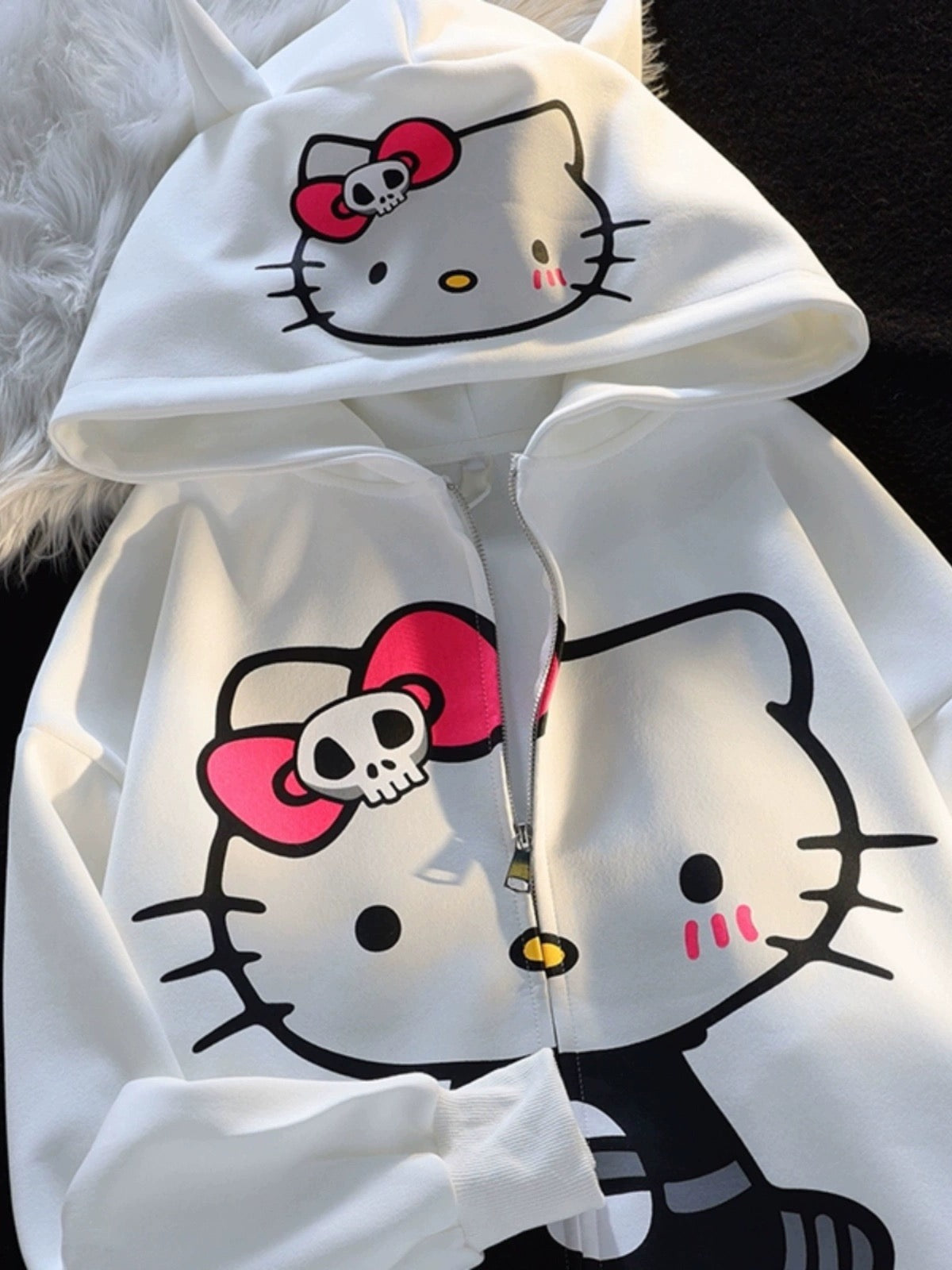 KT Hoodies Fall Jacket Oversized Sweatshirts Casual Drawstring Zip Up Y2K Hoodie with Pocket