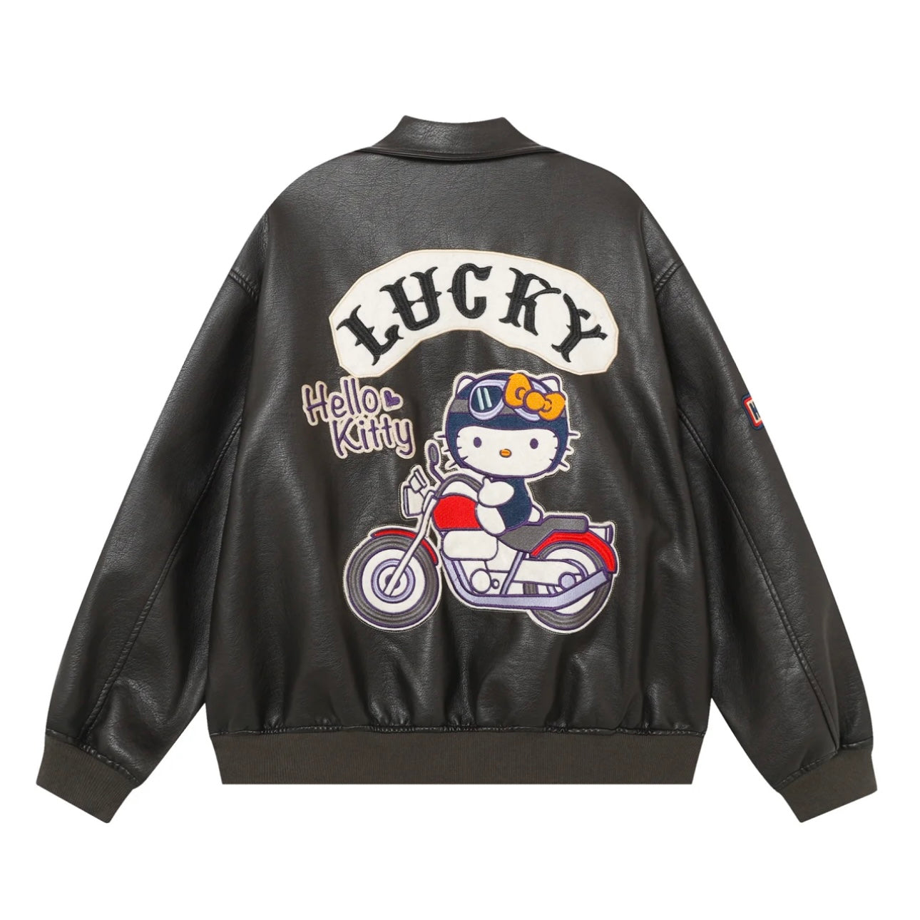 Hellokitty Leather Jackets Faux Suede Fall Fashion Motorcycle Coats Winter Outfits Clothes