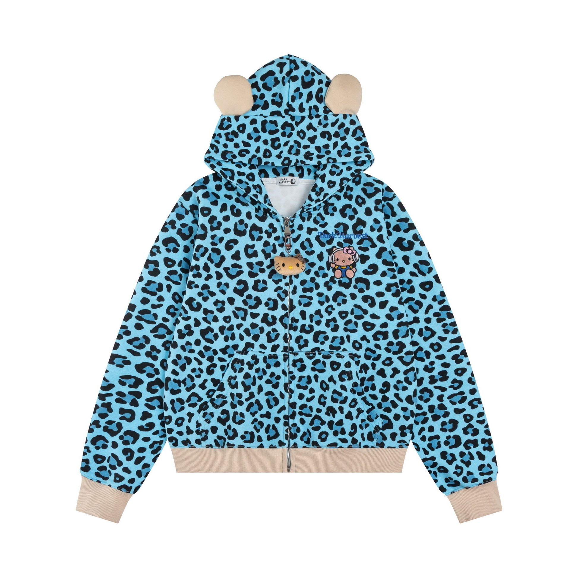 Hellokitty Leopard Print Hoodies Fall Jacket Sweatshirts Casual Drawstring Zip Up Y2K Hoodie with Pocket
