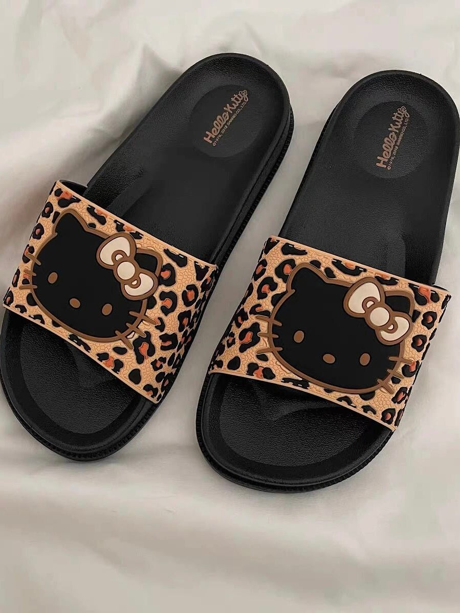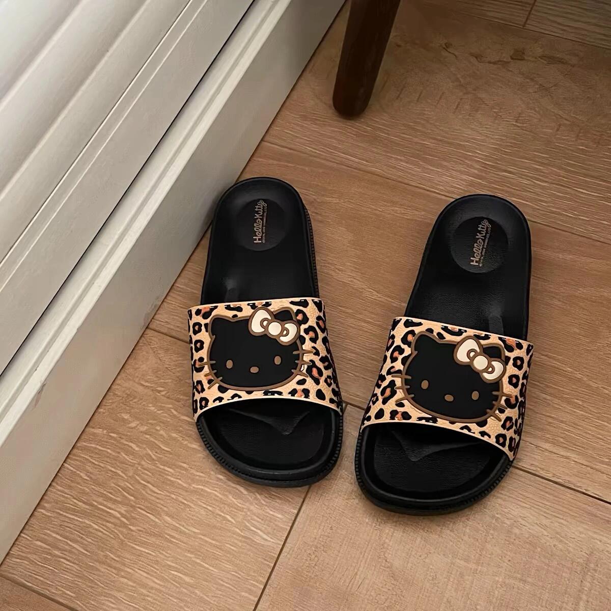 Hellokitty Leopard Print Shower Sandals Bathroom Slippers Non-Slip Indoor Home House Beach Shoes