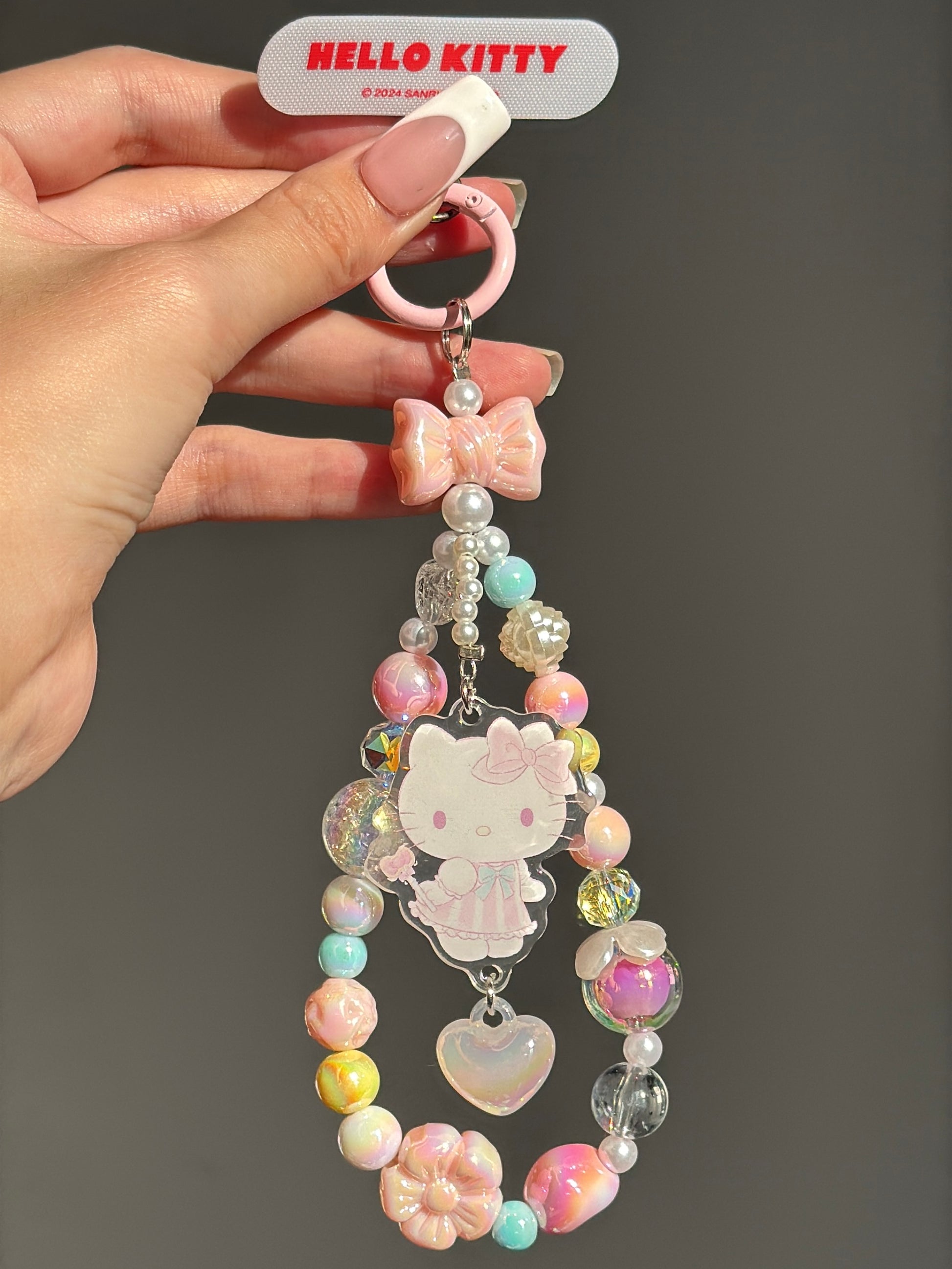 Hellokitty Phone Charm with Beaded Marble Cell Phone Lanyard with Tether Tab Phone Chain Strap Hands-Free Wrist Strap