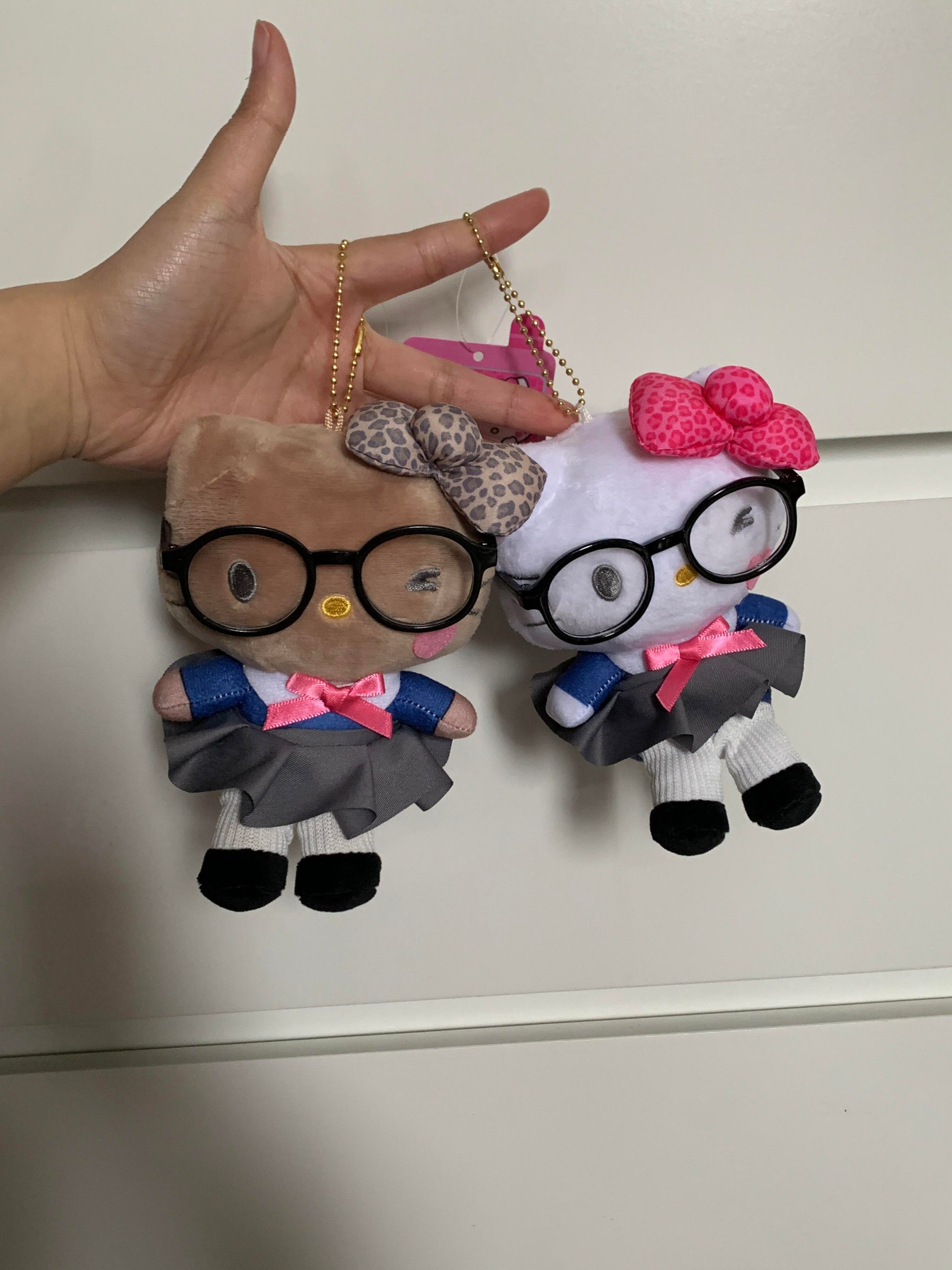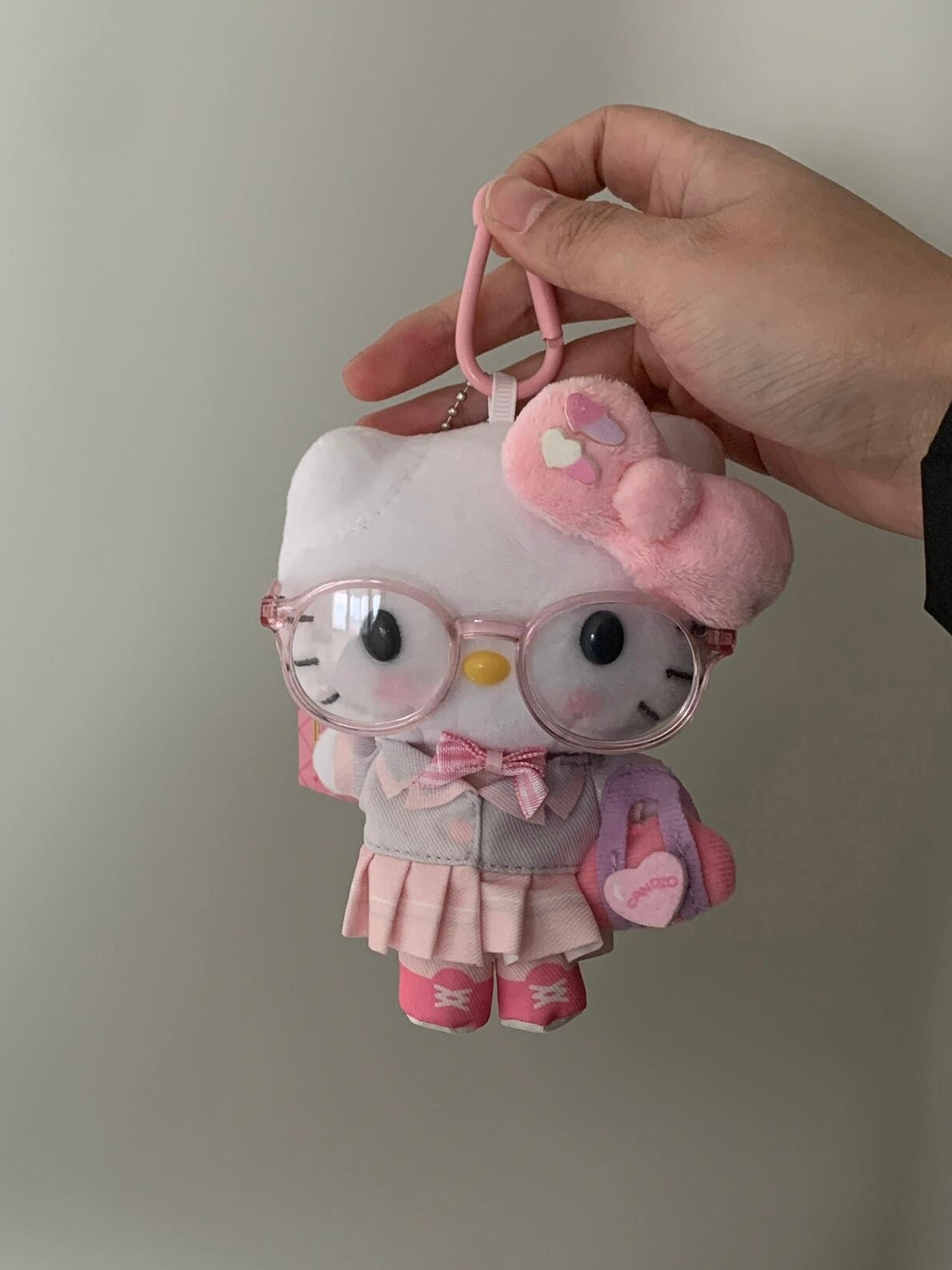 Hellokitty Pink Eyeglasses Plush Keychain Cute Accessories Pendant Toy Girls Gift
