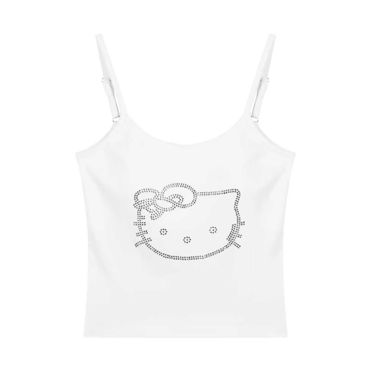 Hellokitty Rhinestone Camisoles Tops with Built in Padded Bra Basic Breathable Tank Top