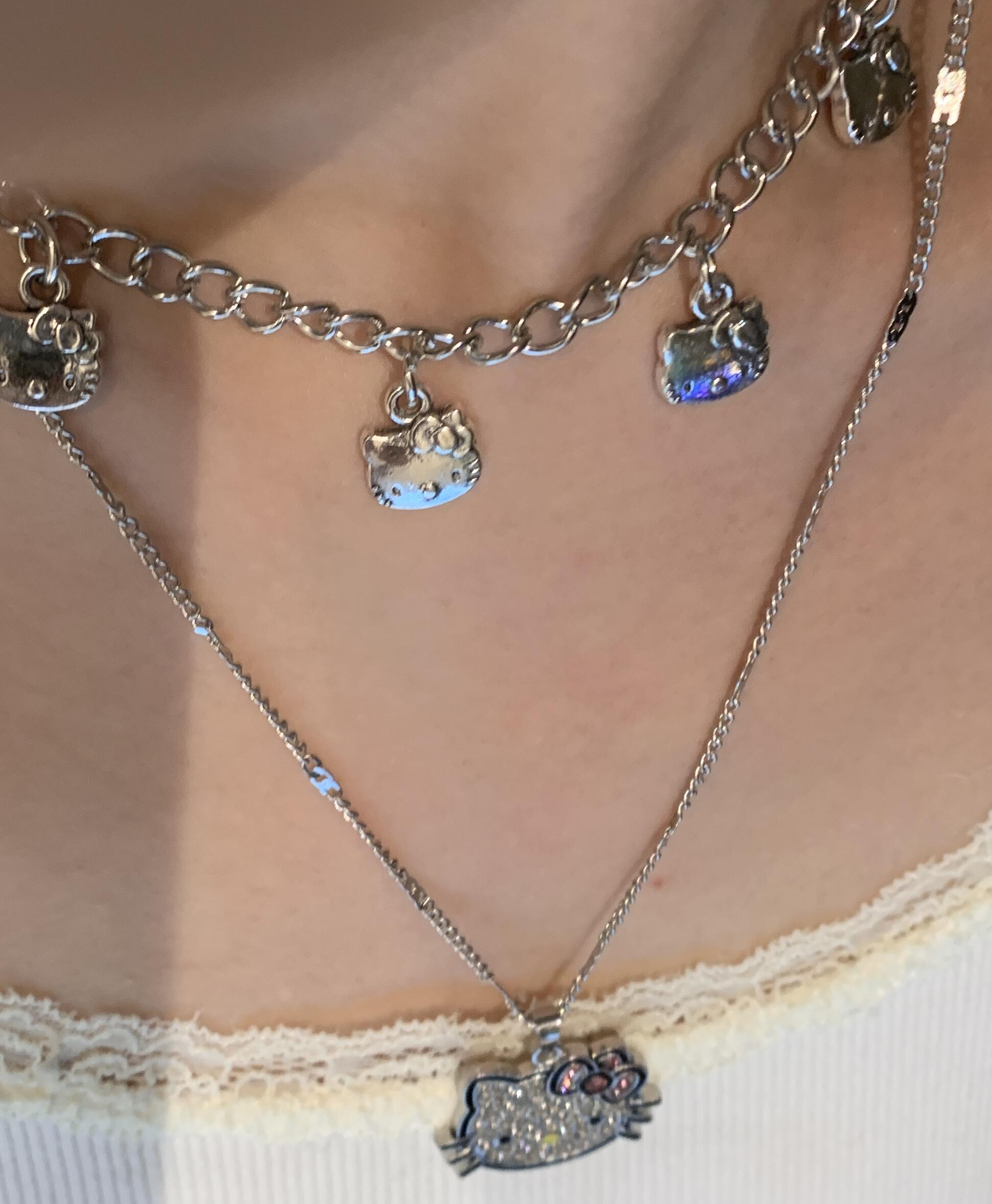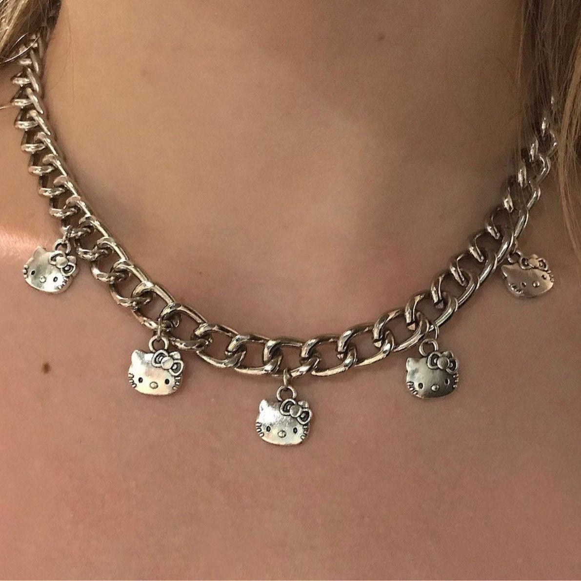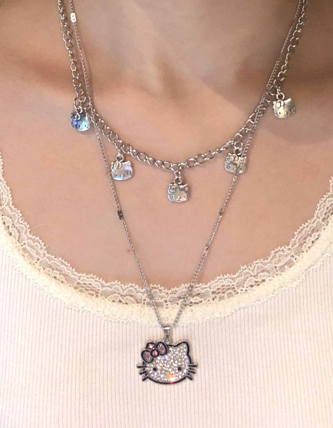 KT Rhinestone Pendant Necklace Y2k Gyaru Kawaii Cute Gothic Punk Chain Choker for Women Eboys Egirls