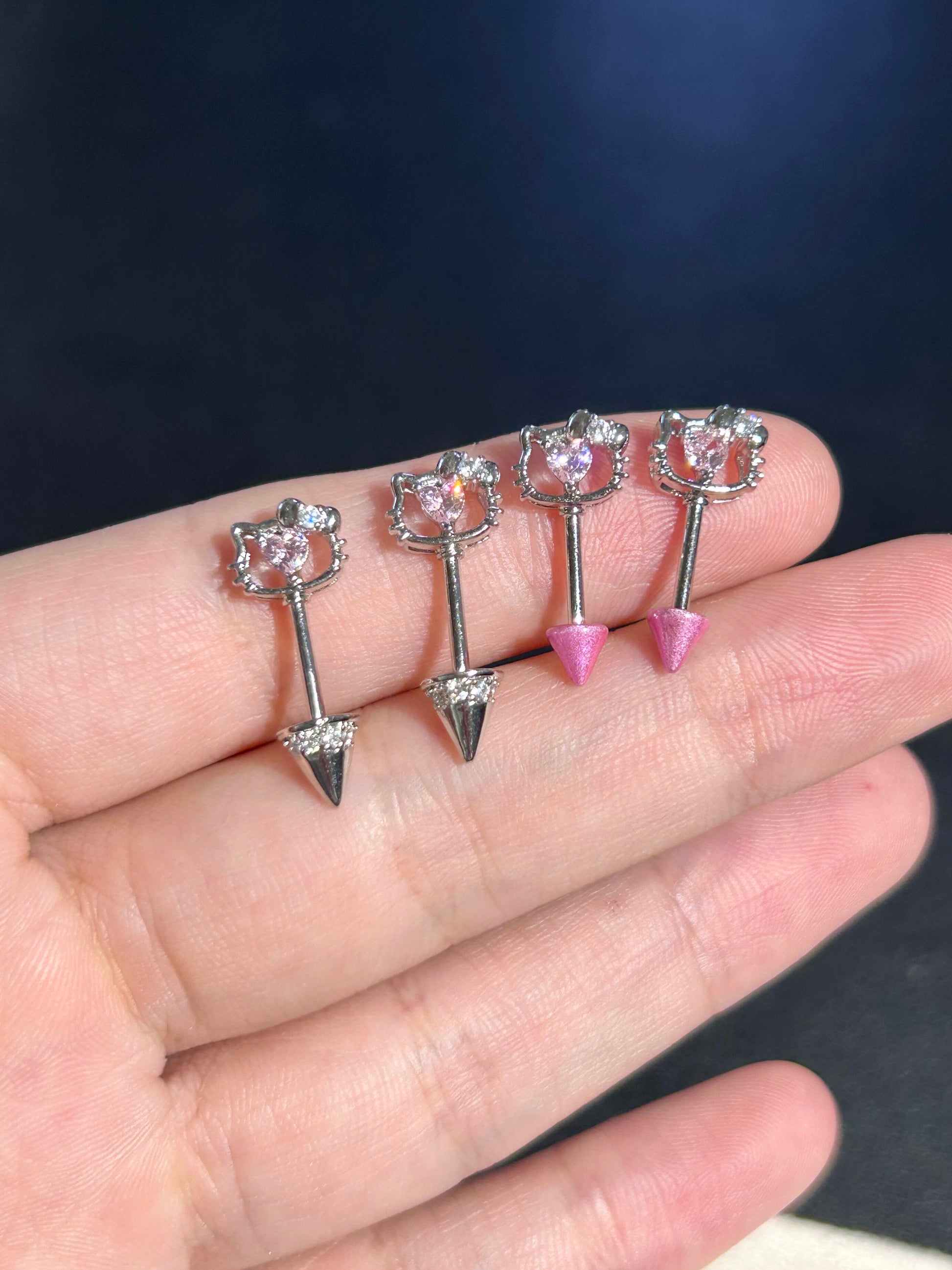 Hellokitty Shape Pink Rhinestones Titanium Steel Ear Stud Earrings
