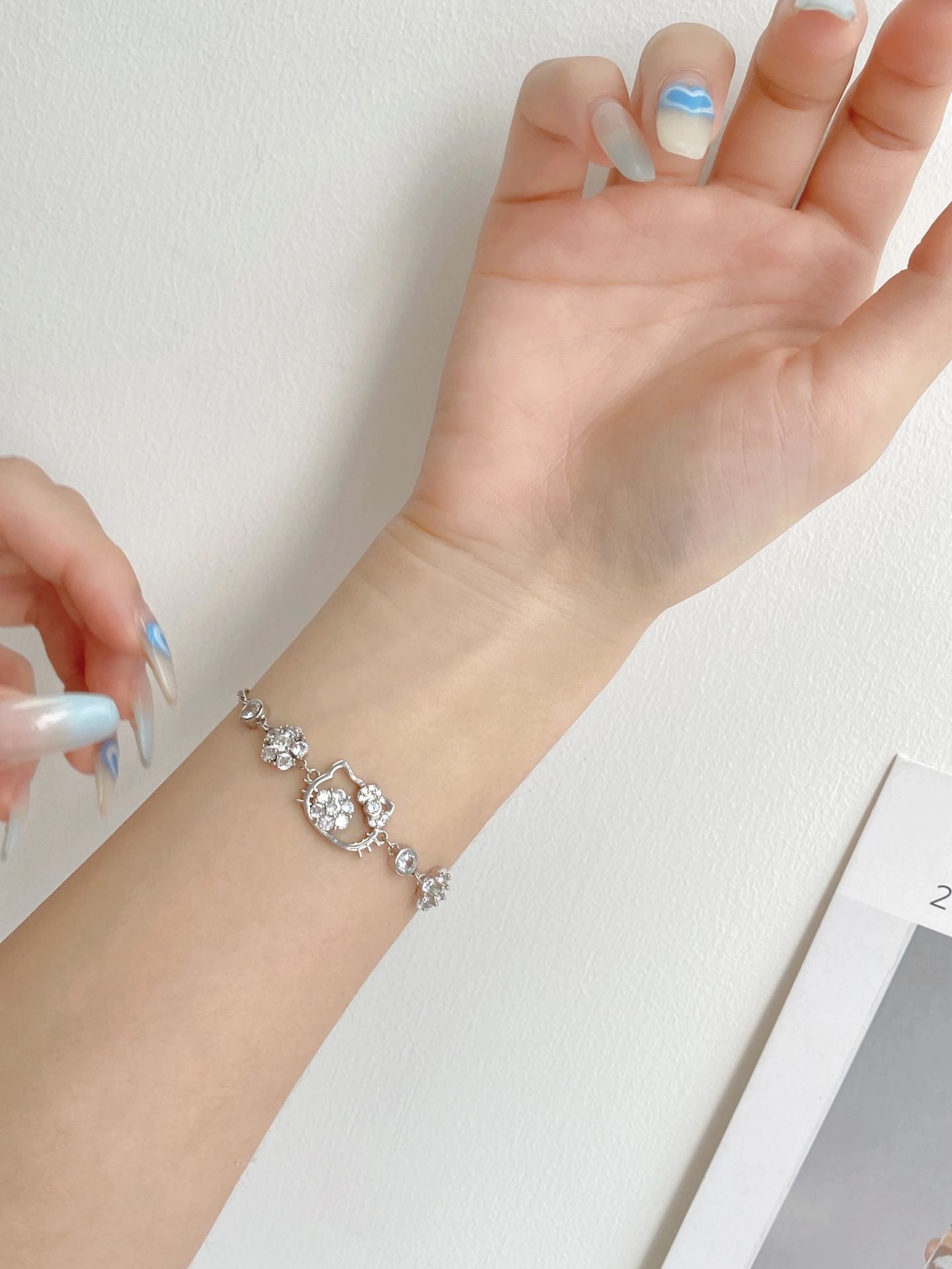 KT Sterling Silver Cute Bracelet with Crystal | Birthday Christmas Jewelry Gifts for Women Girls