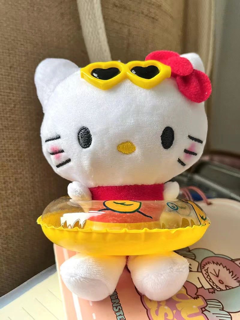 KT Tan Swimming Ring Plush Keychain|5in/12Cm Cute Pendant Doll Keyring Accessories Pendant Toy Girls Gift