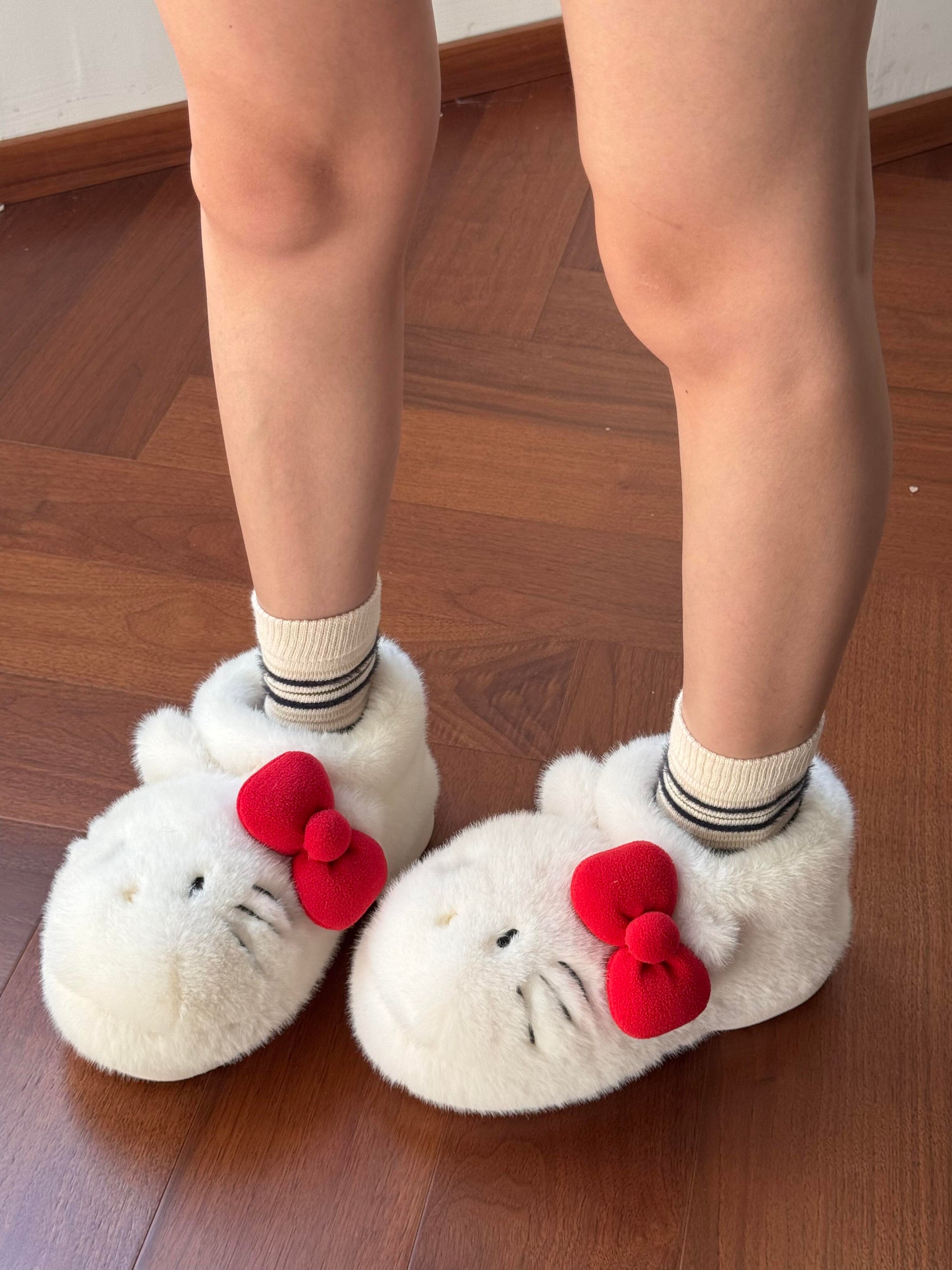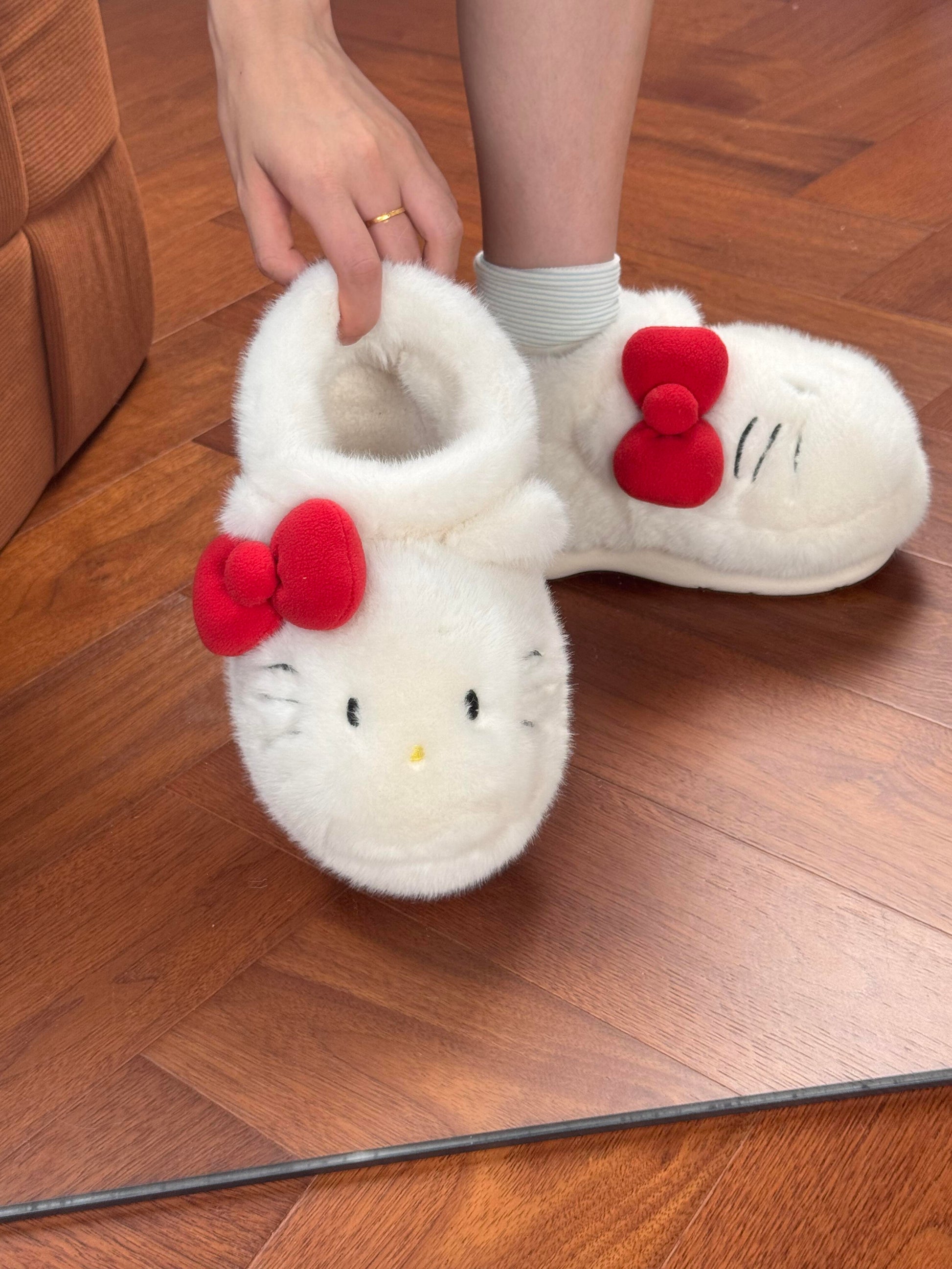 Hellokitty White Cute Fur Winter Boots Fluffy Boots Shoes