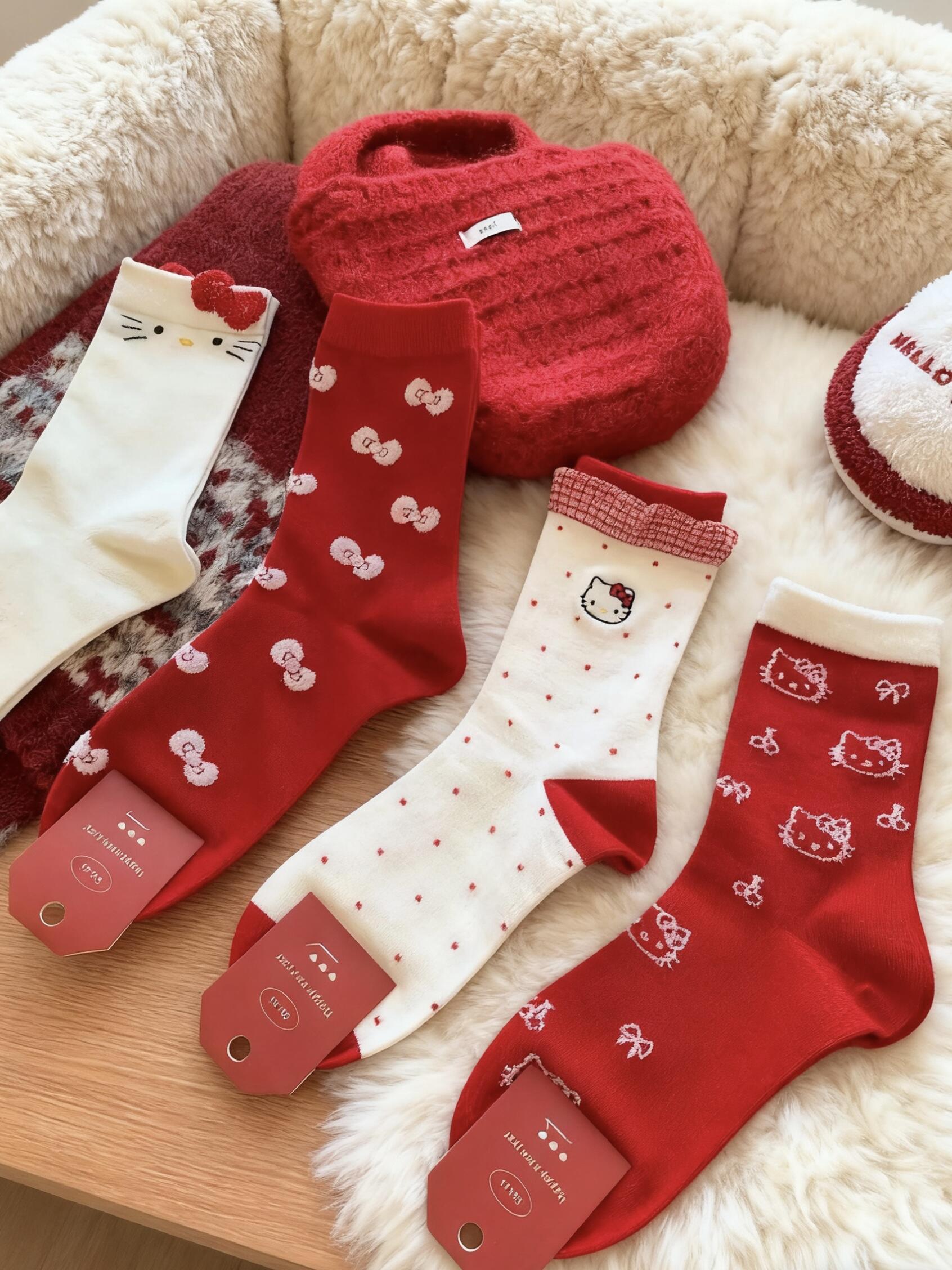 Hellokitty Women Autumn Winter Cotton Mid Calf Socks
