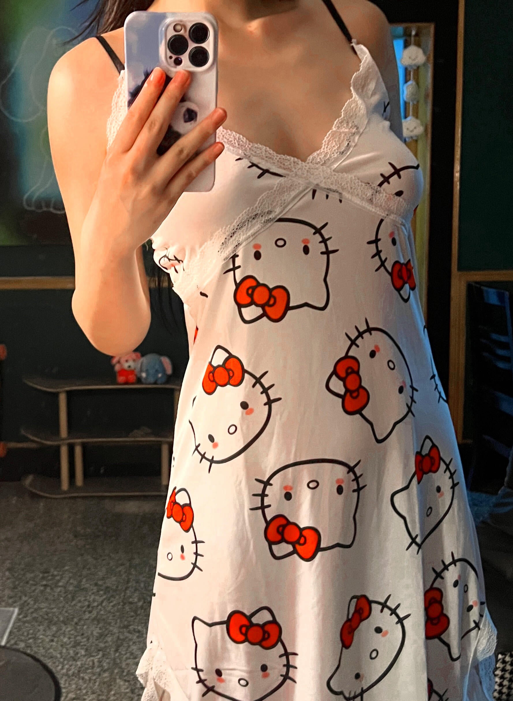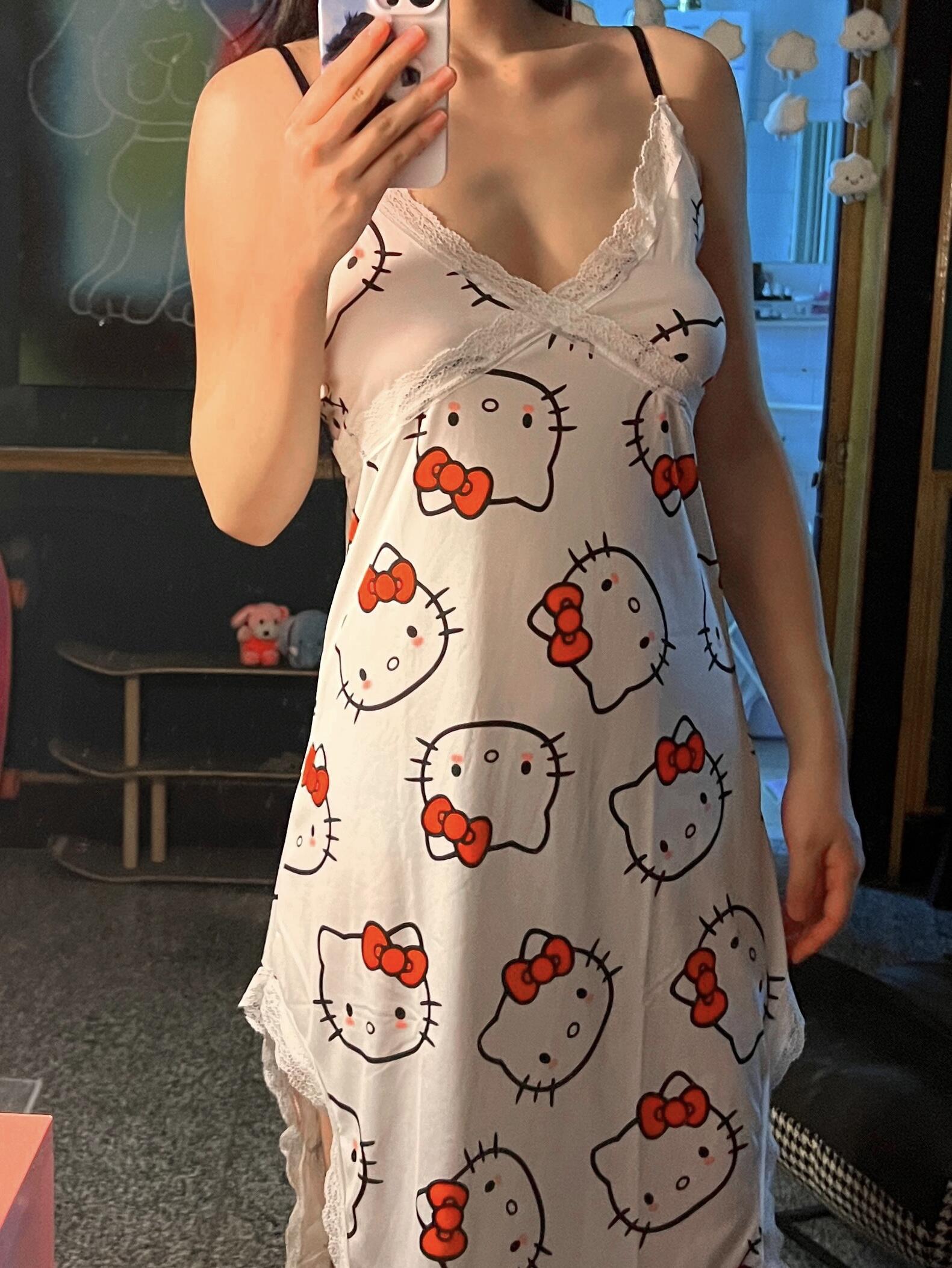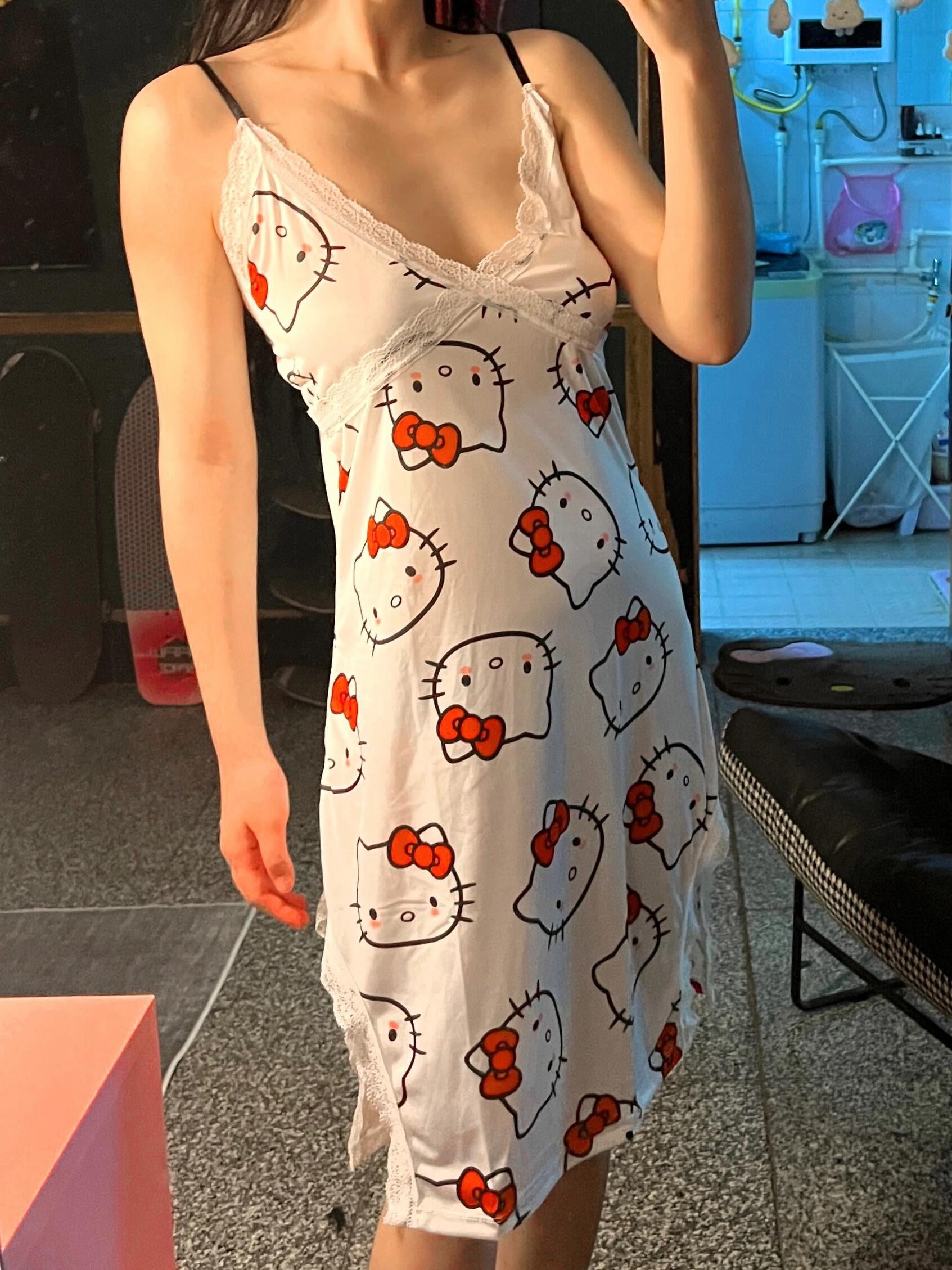 Hellokitty Women Chemise Night Gown Lace Modal Sleepwear V-Neck Full Slip Babydoll Lingerie Sexy Nightgowns