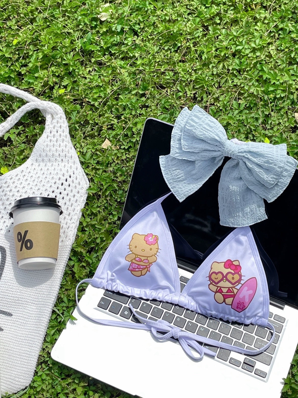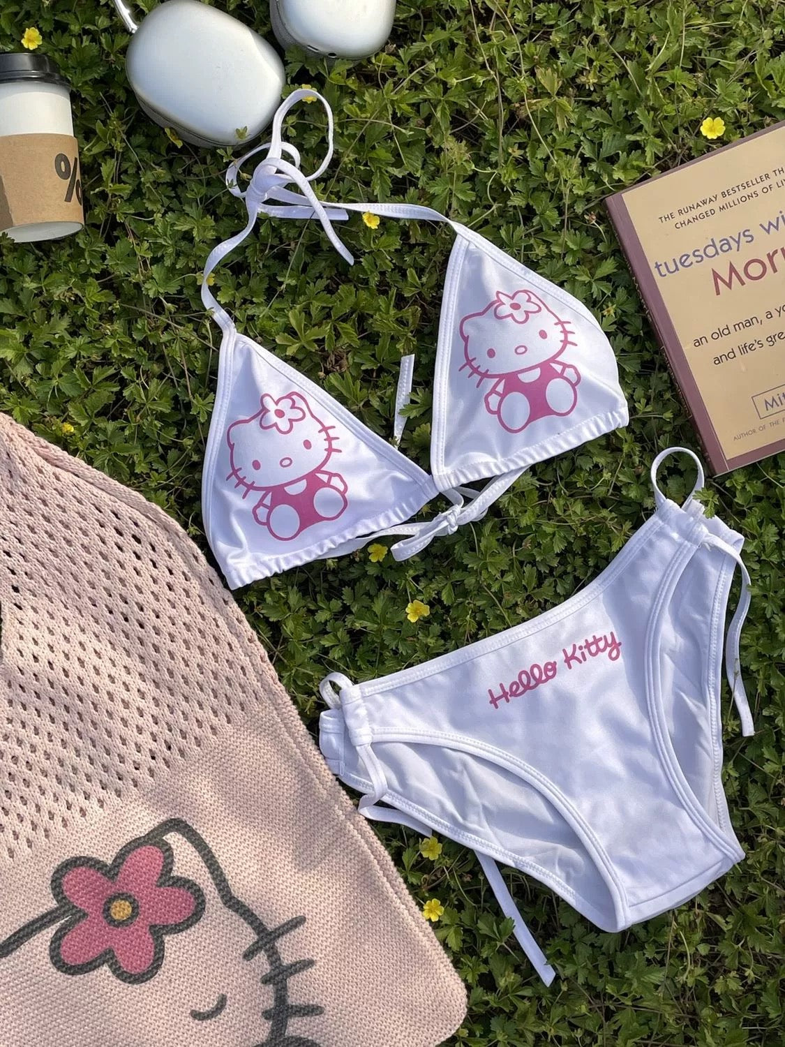 Hellokitty Women's Halter Tie Side Triangle Bikini Set high Cut 2 Piece Bikini Swimsuit Bathing Suit