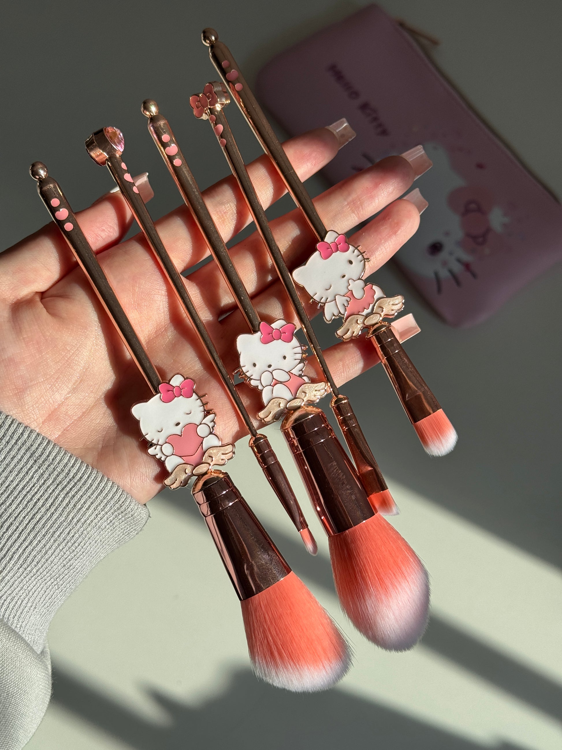 Makeup Brush Set 5 Pcs Makeup Brush with Pink Bag