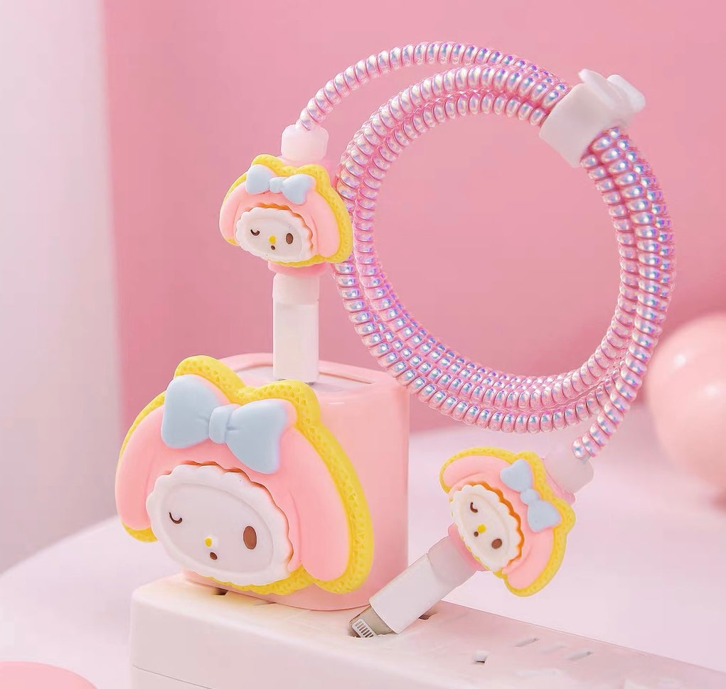 Sanrio Charger Protector Case - Compatible for Apple 20W USB-C Power Adapter and Lightning Cable