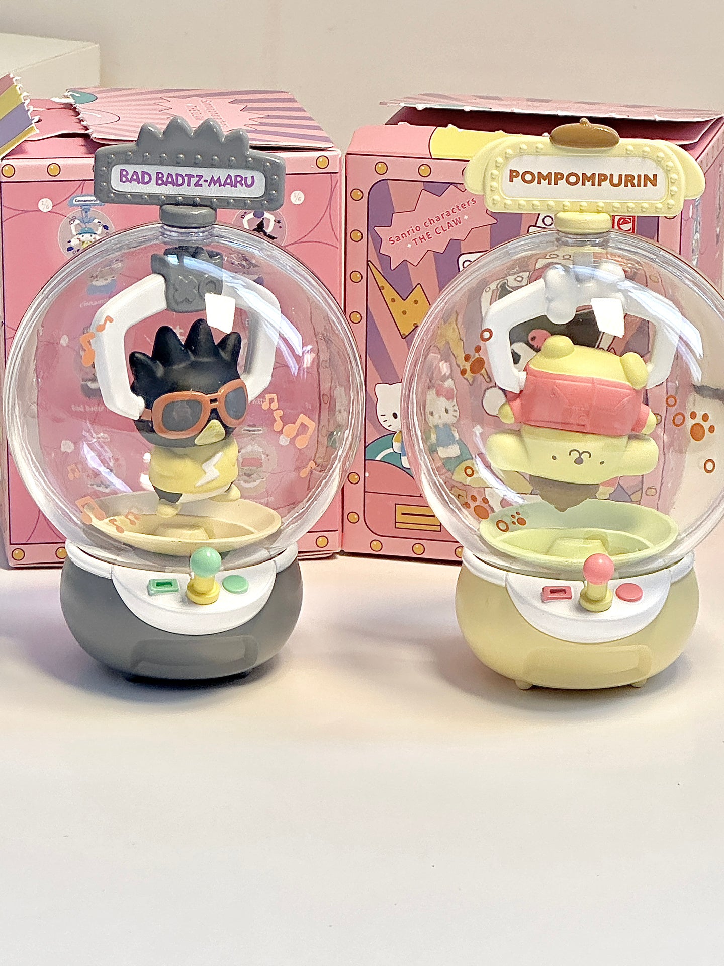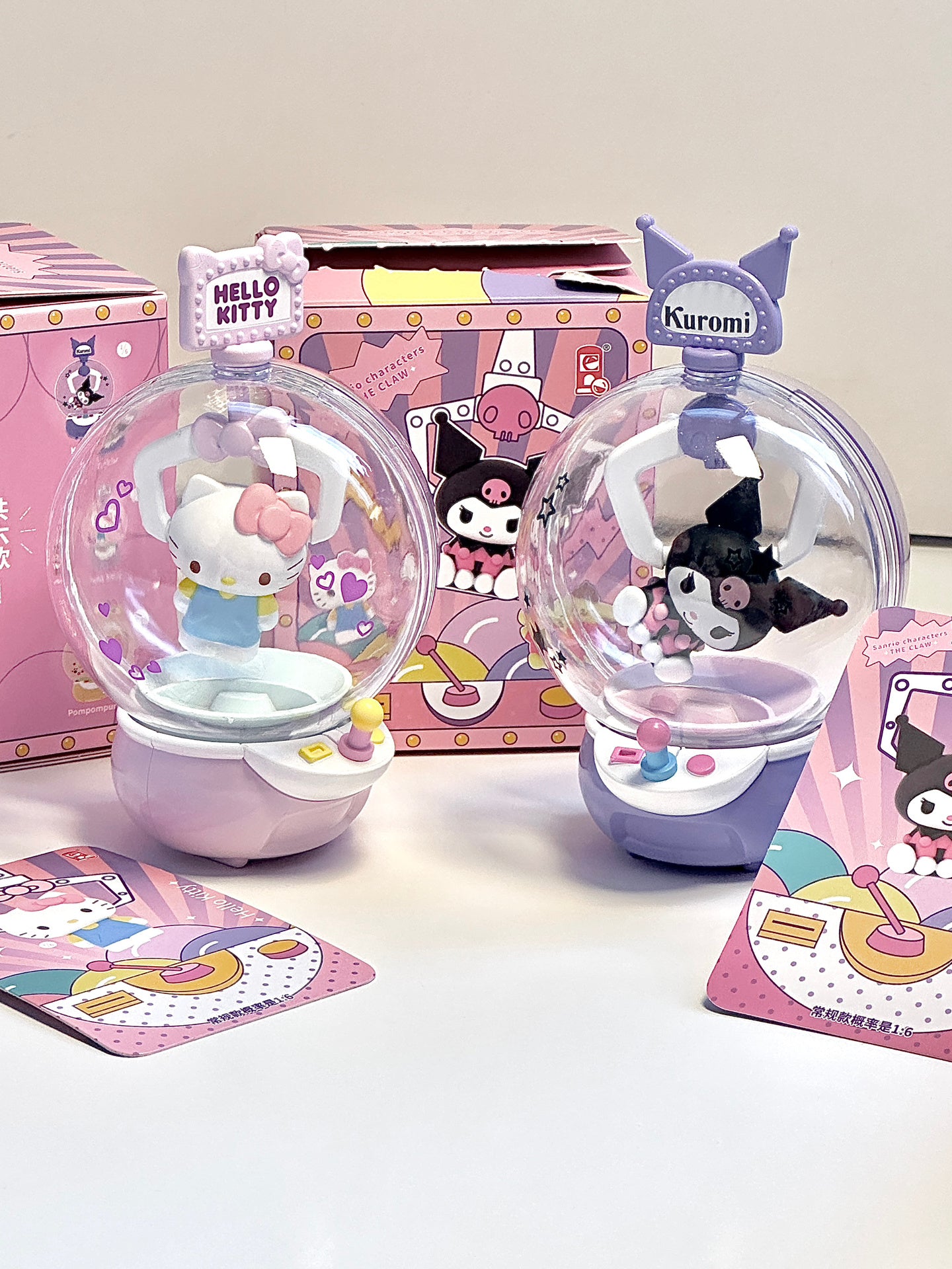 The Sanrio Claw Machine Figure Blind Box featuring six unique figurines of Sanrio characters, each figure is designed in the style of a miniature Japan crane game, making it a fun and unique addition to any collection.