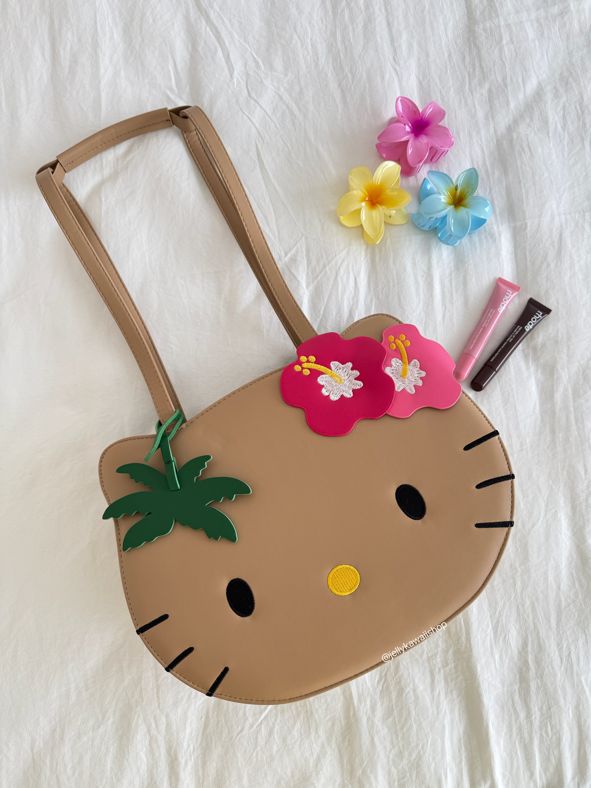 Tan Hawaii Hellokitty PU leather High Capacity Retro Classic Cartoon Tote Bag Adjustable Strap Backpack